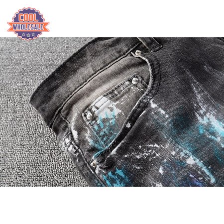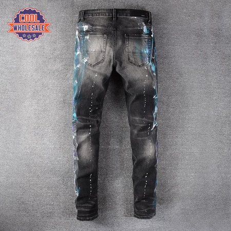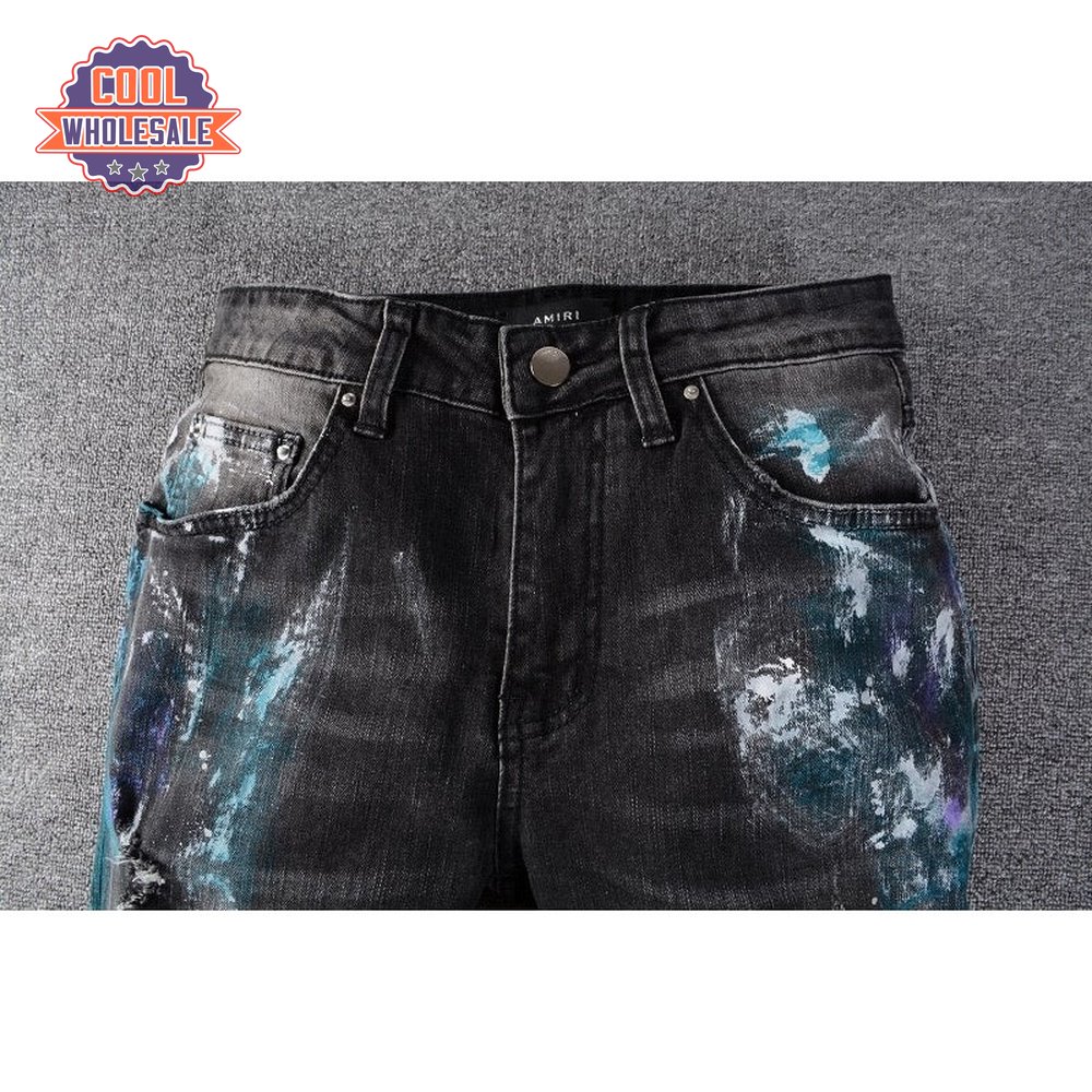 Amiri Blue Splatter Jeans Black