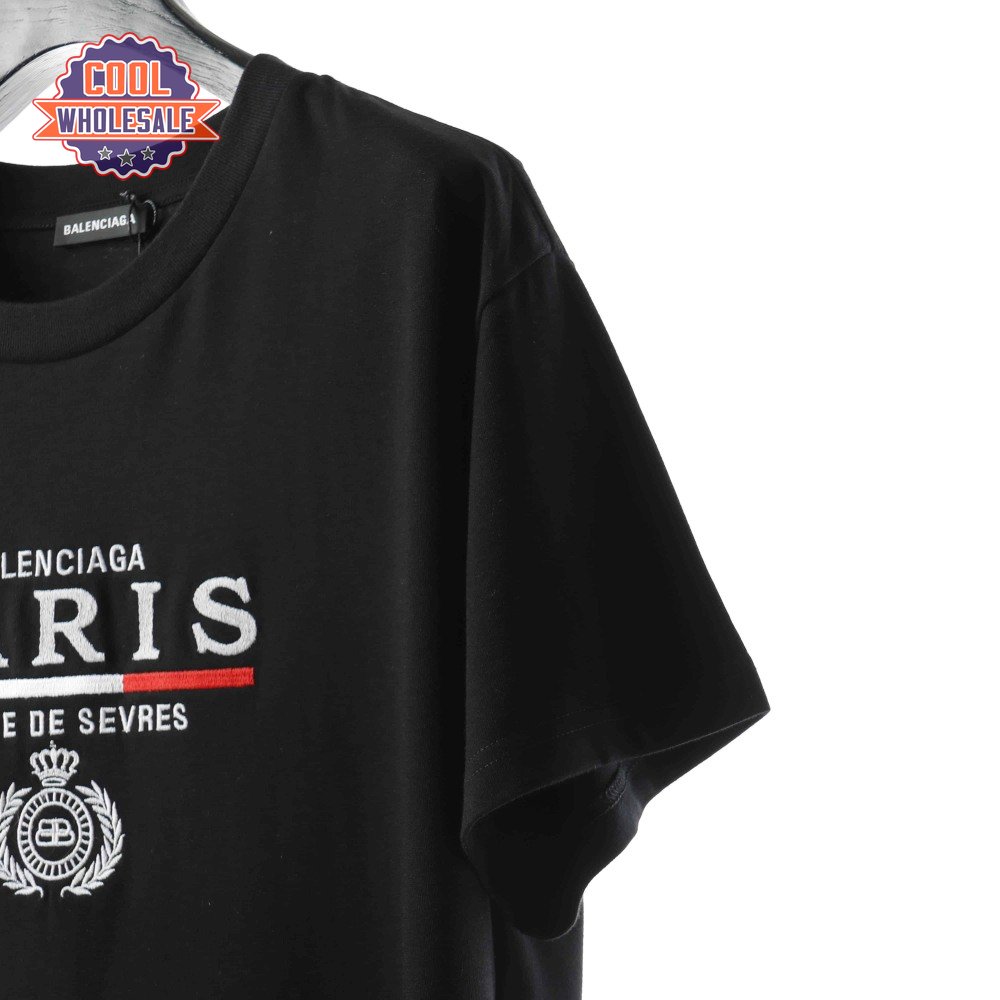 BALENCIAGA CROWN EMBROIDERED BLACK T SHIRT