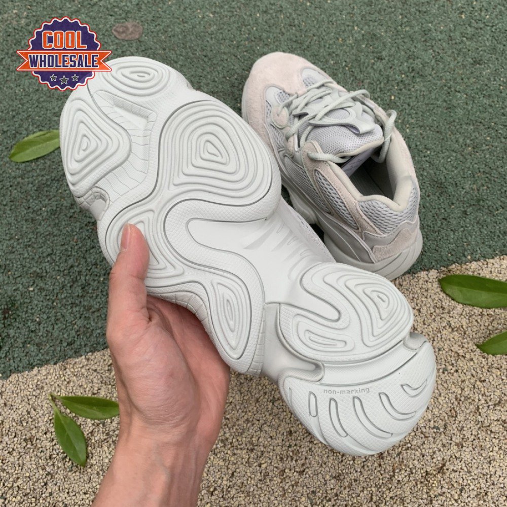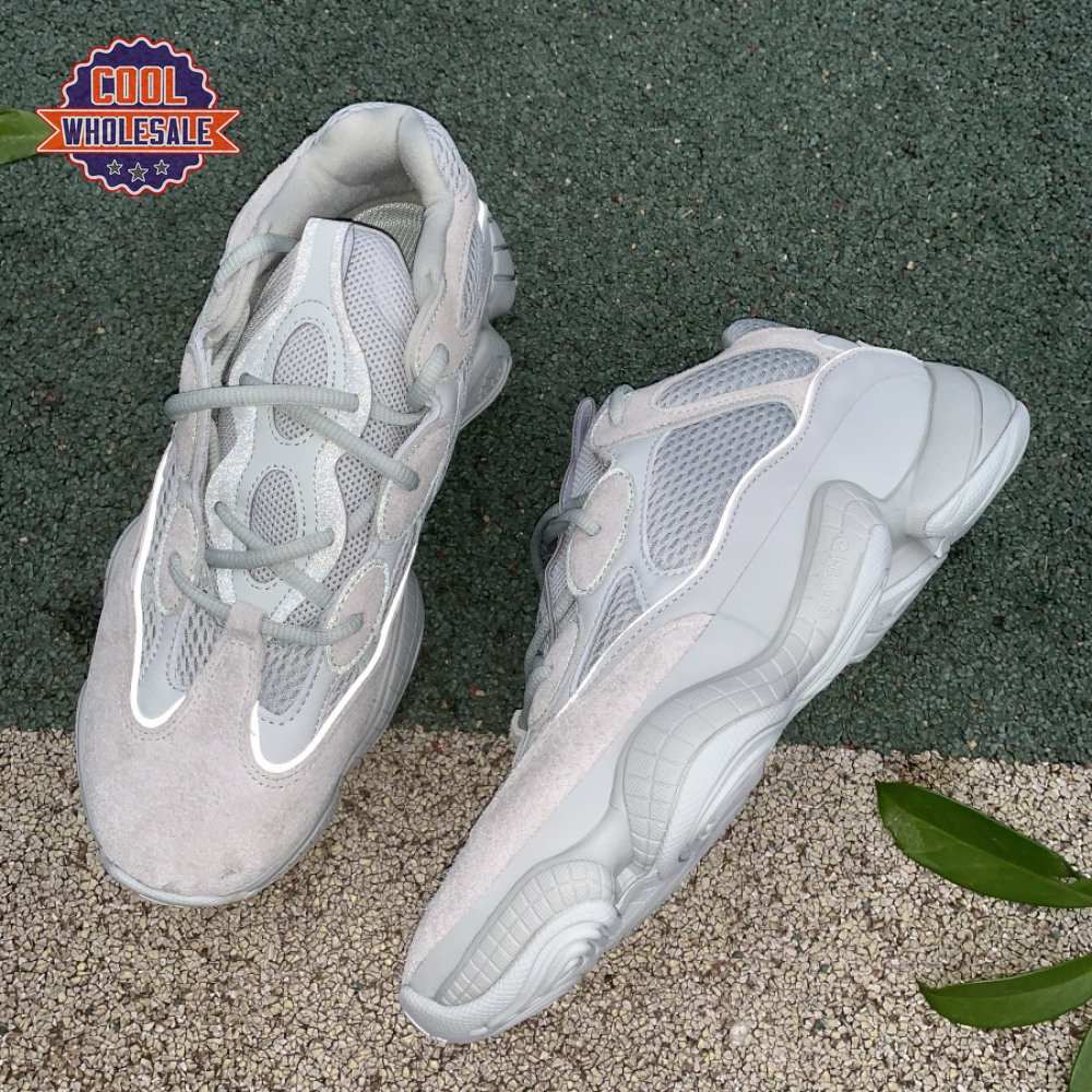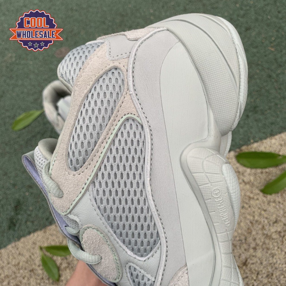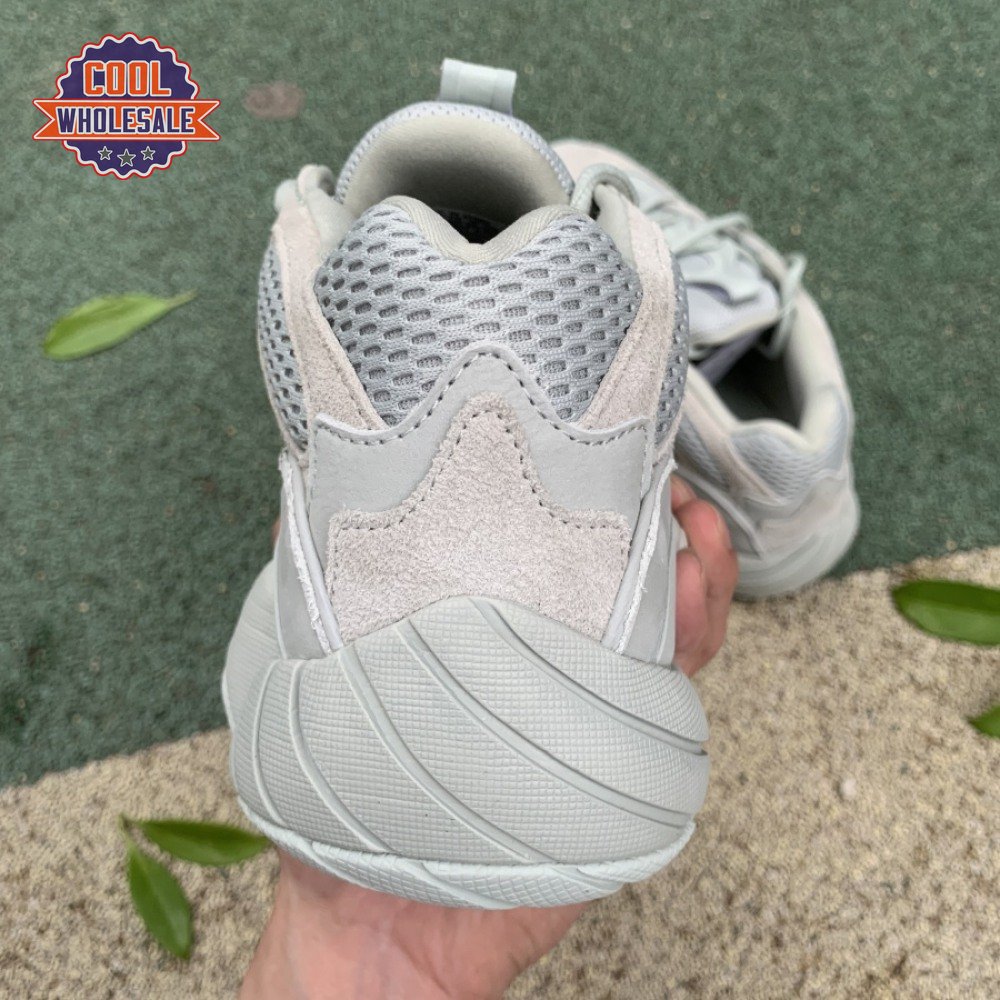 The Yeezy 500 "Salt" sticks with the same monochromatic design used on previous colorways of the bulky lifestyle silhouette. Here, a light grey shade is applied to the layered upper, built with a combination of cow suede, premium leather, mesh and nubuck accents. A rubber wrap atop the midsole provides added durability while reflective trim around the eyelets provide visibility in low-light conditions.