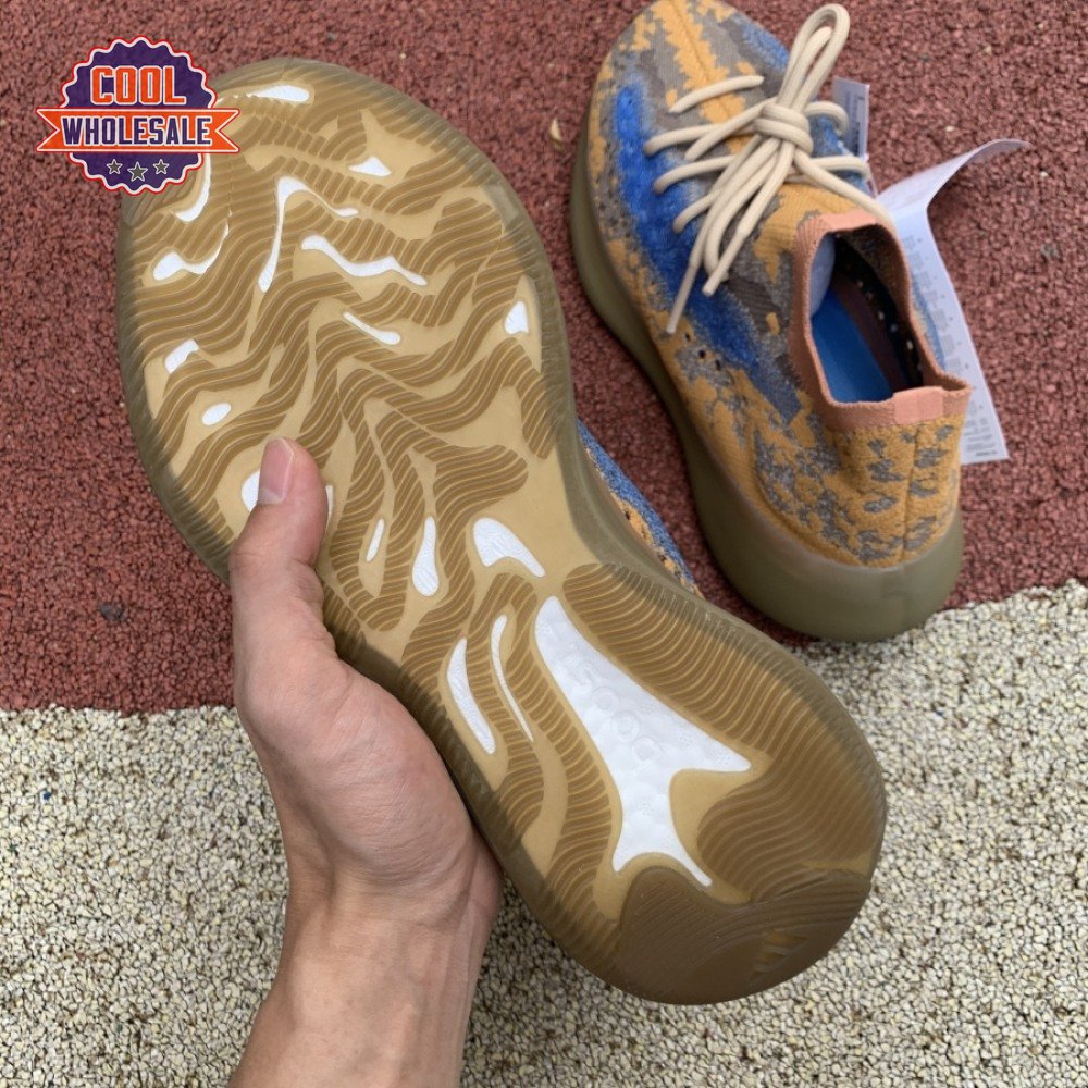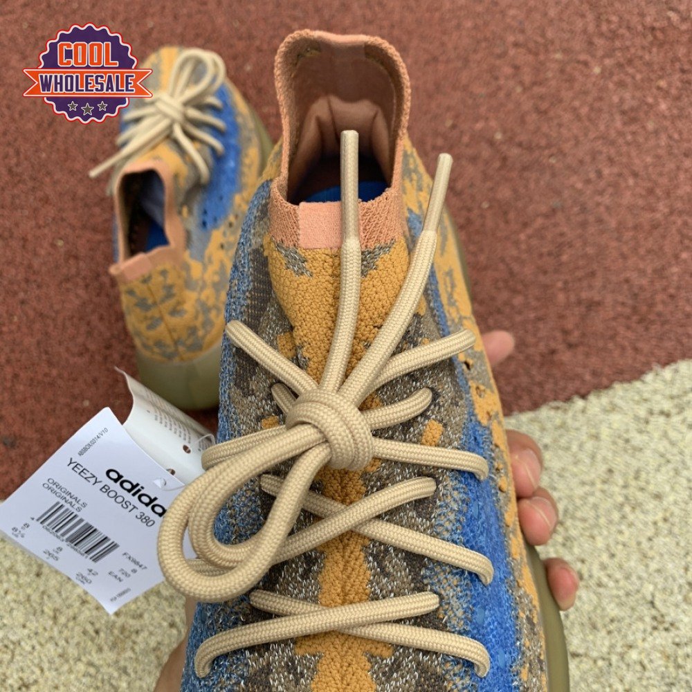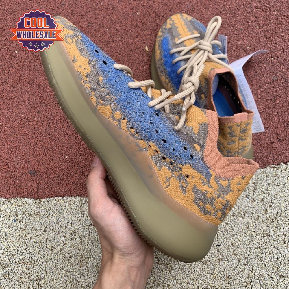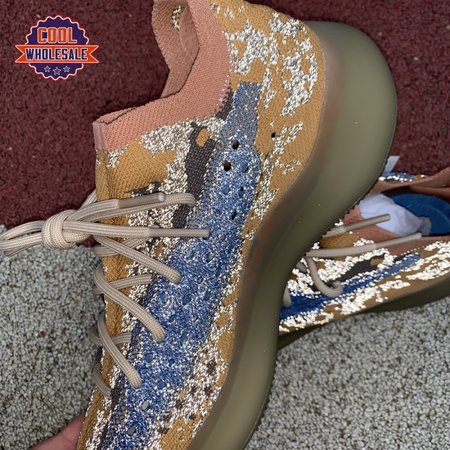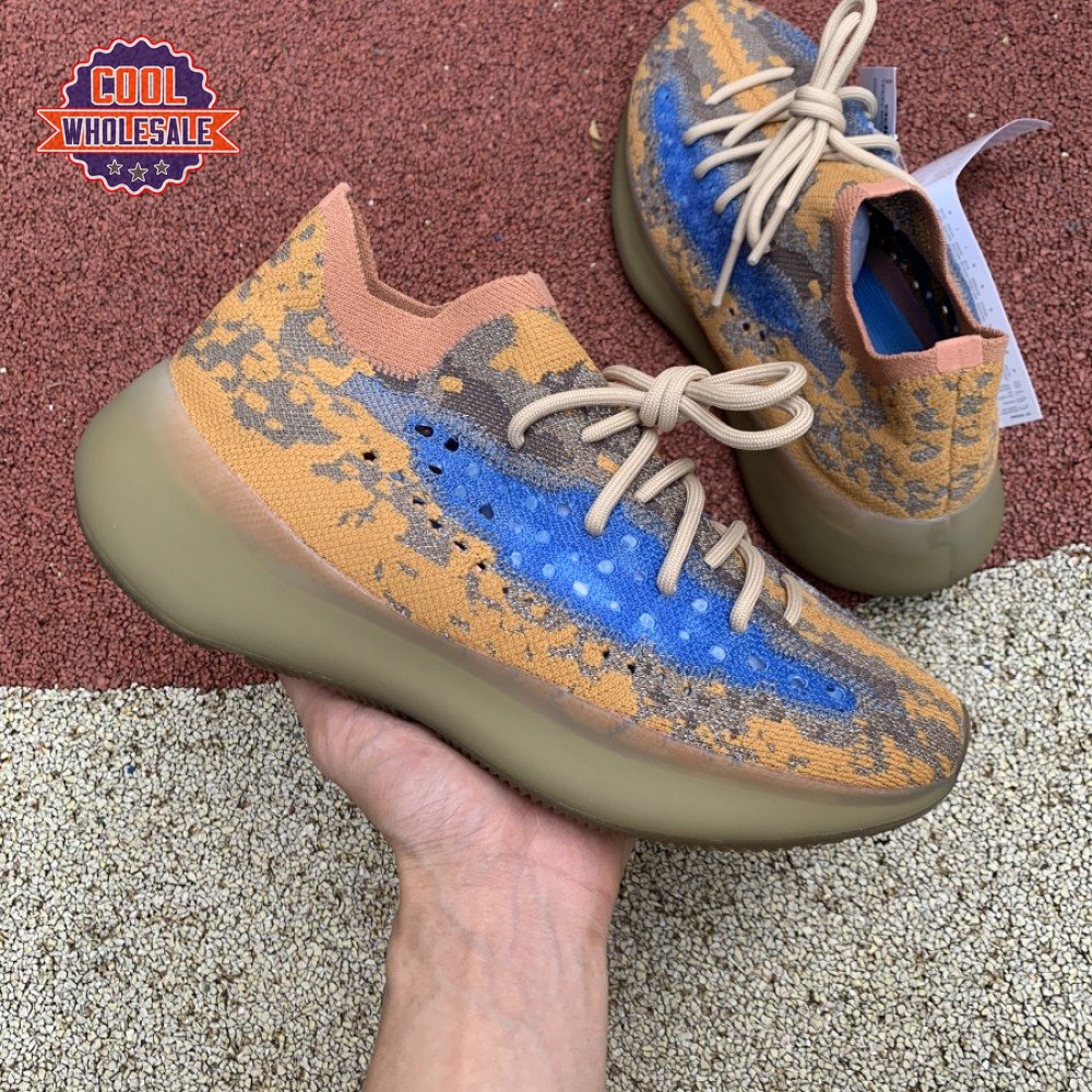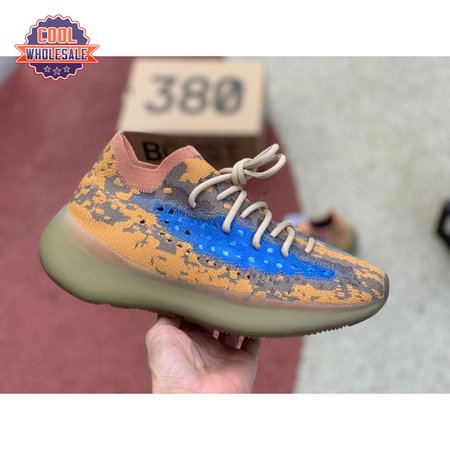 The adidas Yeezy Boost 380 "Blue Oat Reflective" makes use of a Primeknit upper in a blend of orange and brown hues, resulting in a unique camo-like pattern that"s enlivened with a contrasting pop of blue on the translucent monofilament window. Reflective thread is woven into the sock-like build, offering added visibility in low-light conditions. The responsive Boost midsole is encased in semi-translucent rubber and supported by a herringbone rubber outsole.