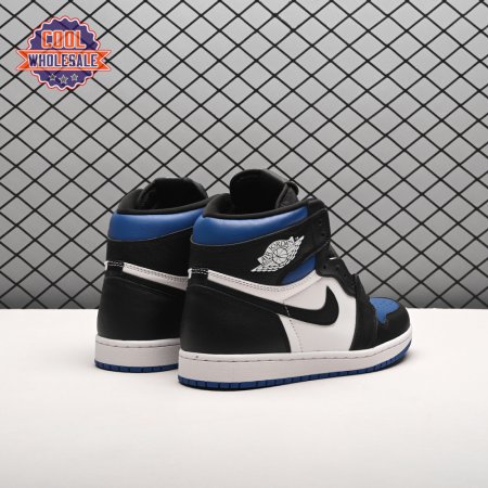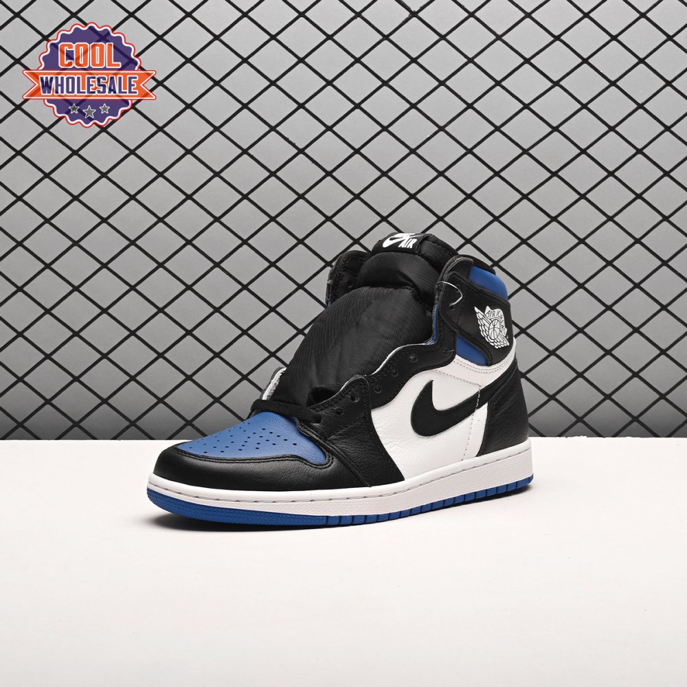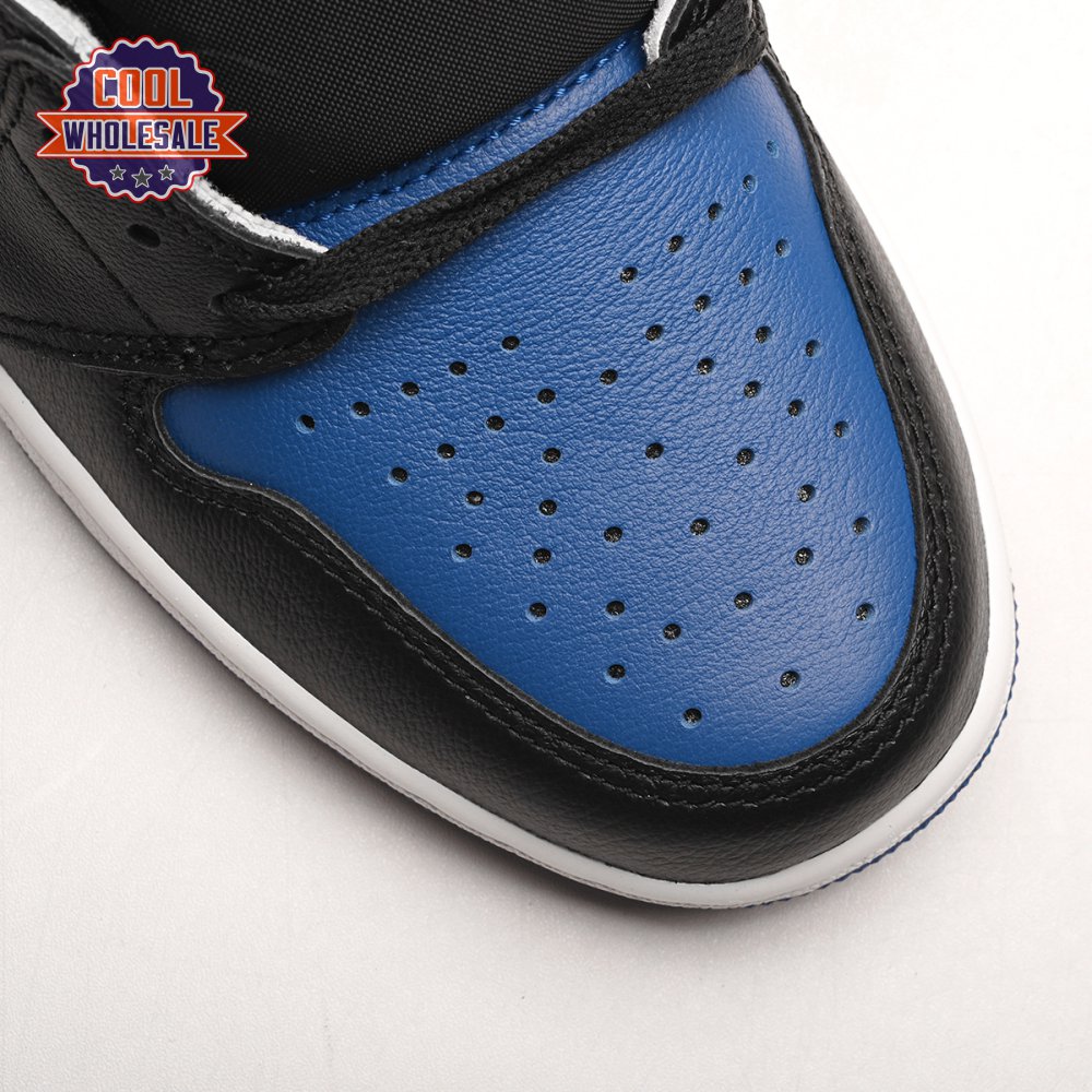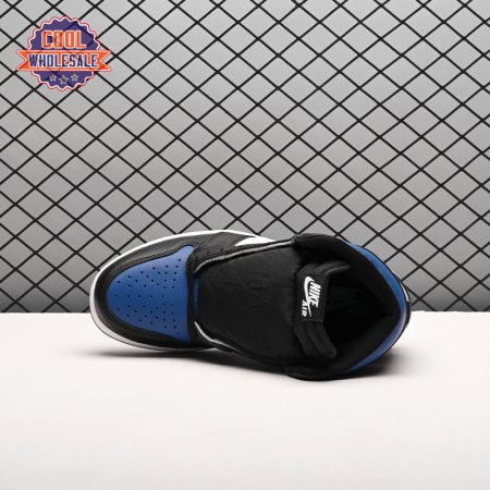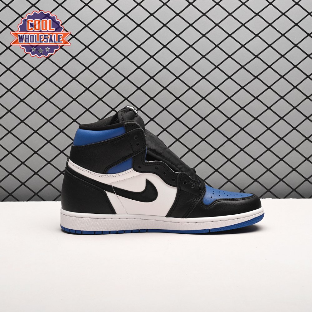 The Air Jordan 1 Retro High OG 'Royal Toe' applies a familiar blend of colors to the iconic silhouette. The all-leather upper features a white base with contrasting black overlays and pops of Game Royal at the collar, toe box and rubber outsole. A lightly padded nylon tongue in black is topped with a Nike Air tongue tag, while the classic Jordan Wings logo appears in white on the lateral collar flap.