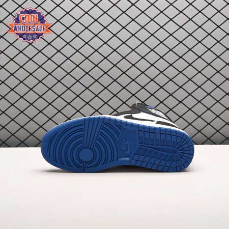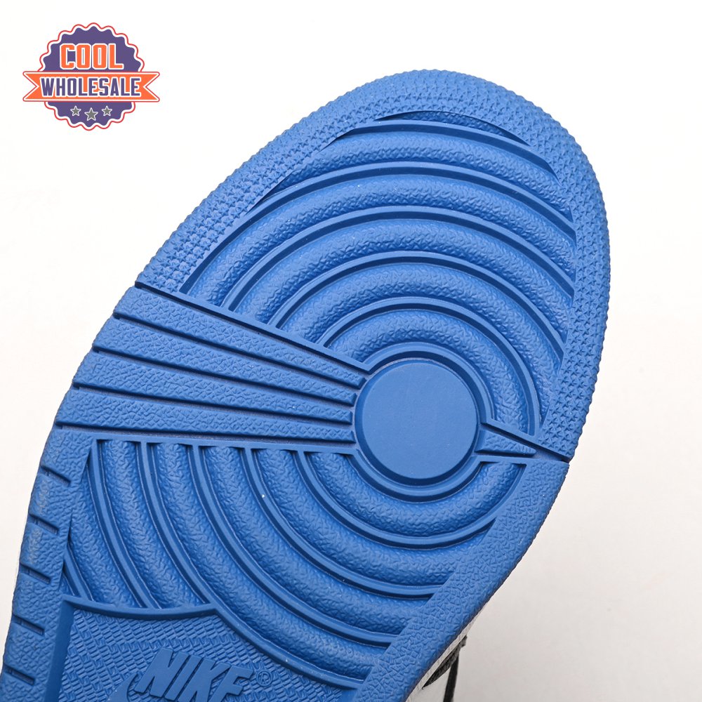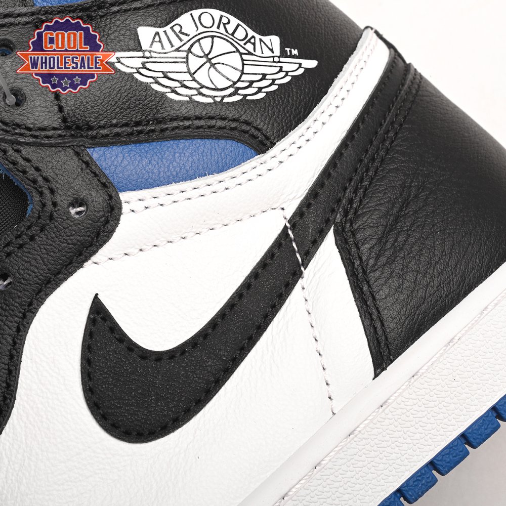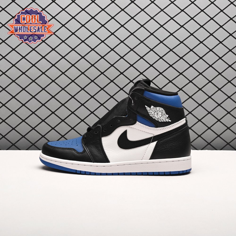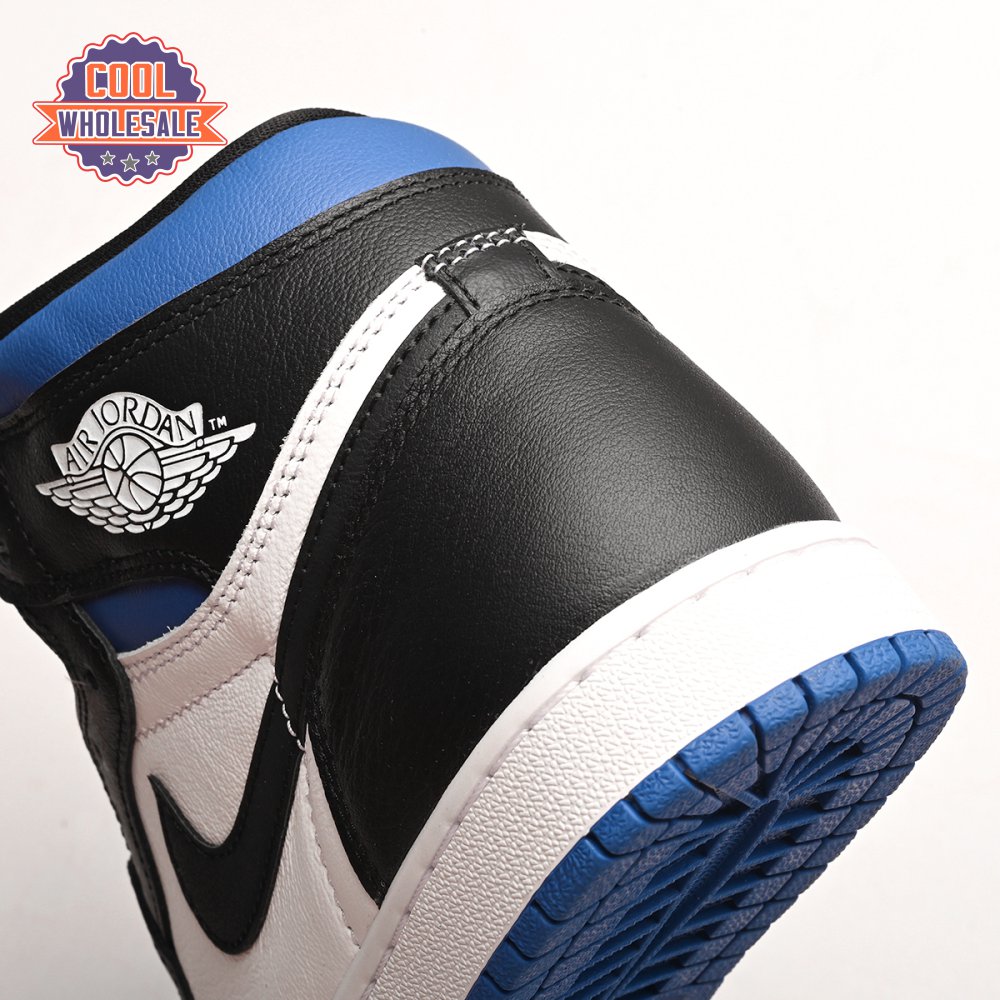 The Air Jordan 1 Retro High OG 'Royal Toe' applies a familiar blend of colors to the iconic silhouette. The all-leather upper features a white base with contrasting black overlays and pops of Game Royal at the collar, toe box and rubber outsole. A lightly padded nylon tongue in black is topped with a Nike Air tongue tag, while the classic Jordan Wings logo appears in white on the lateral collar flap.