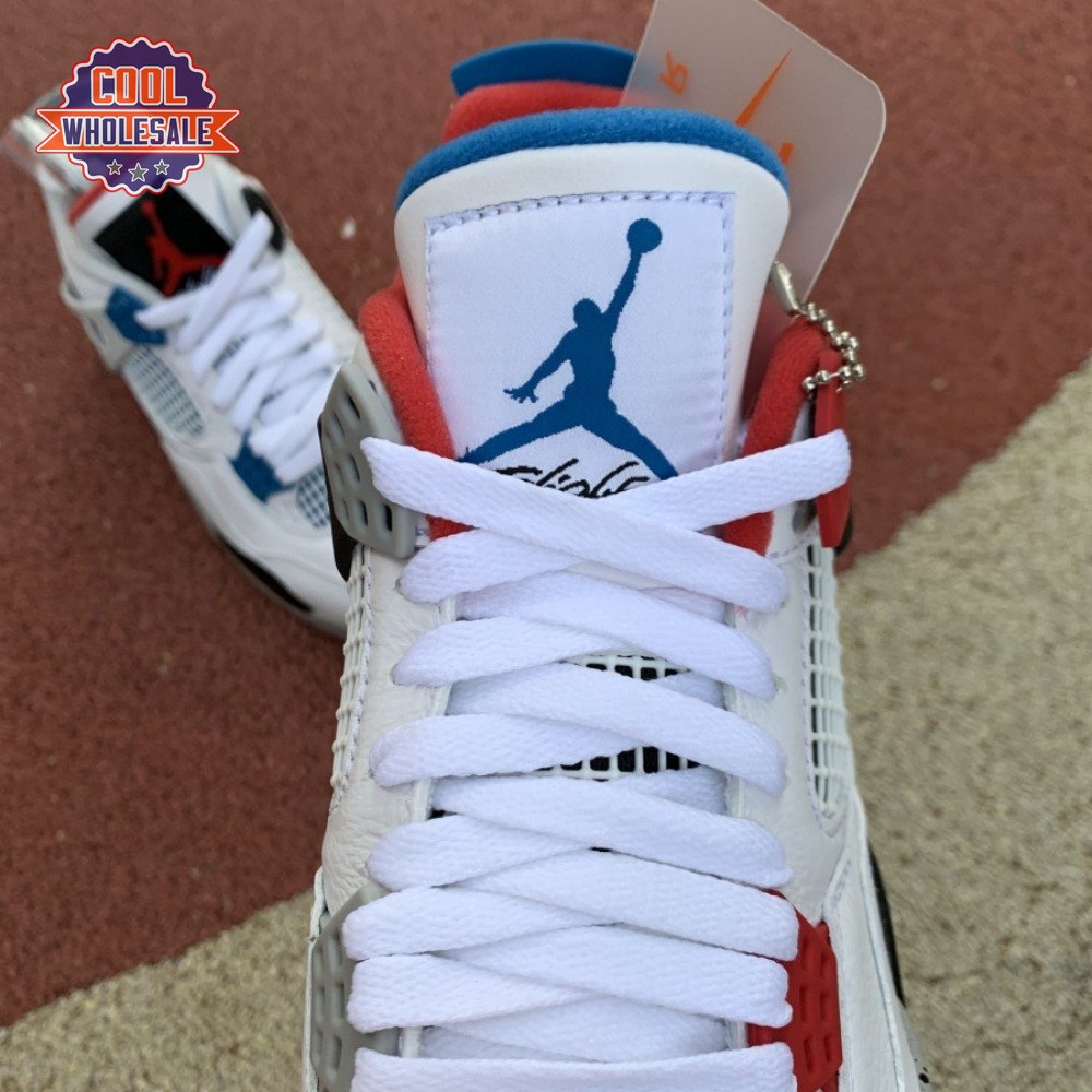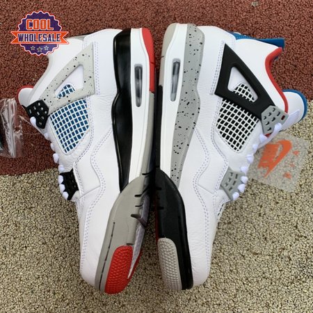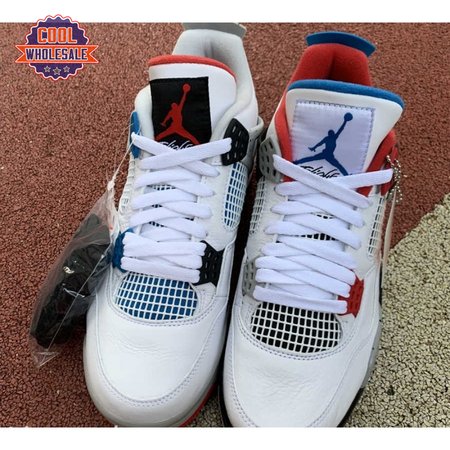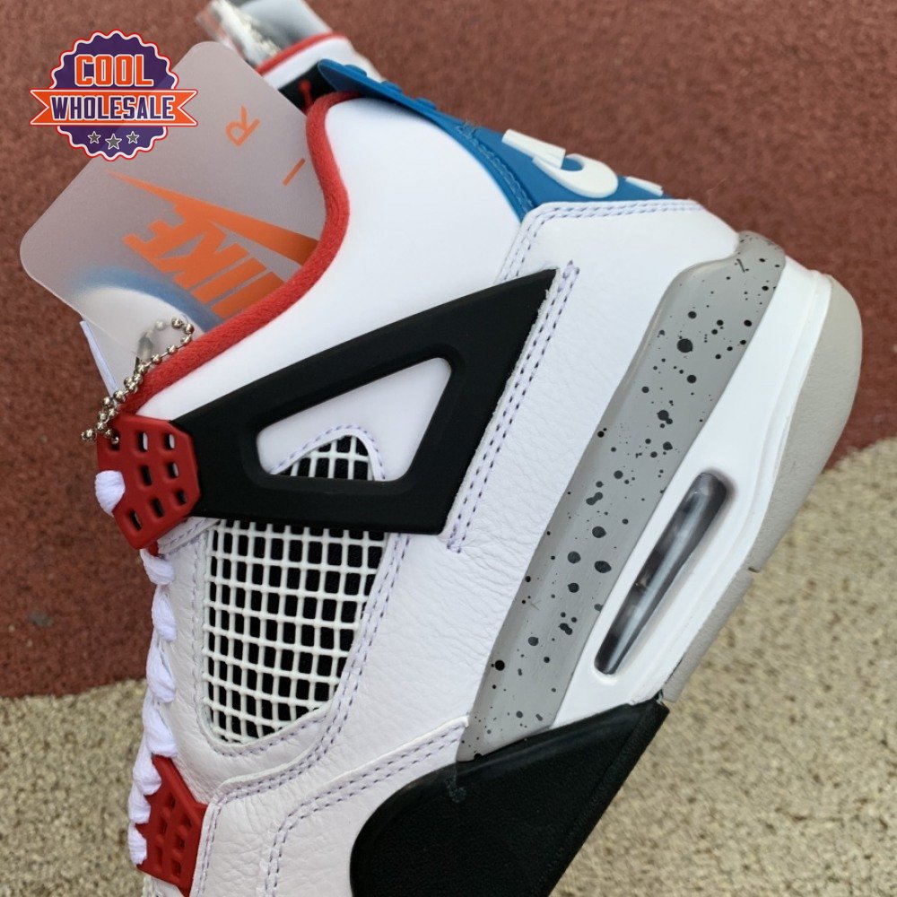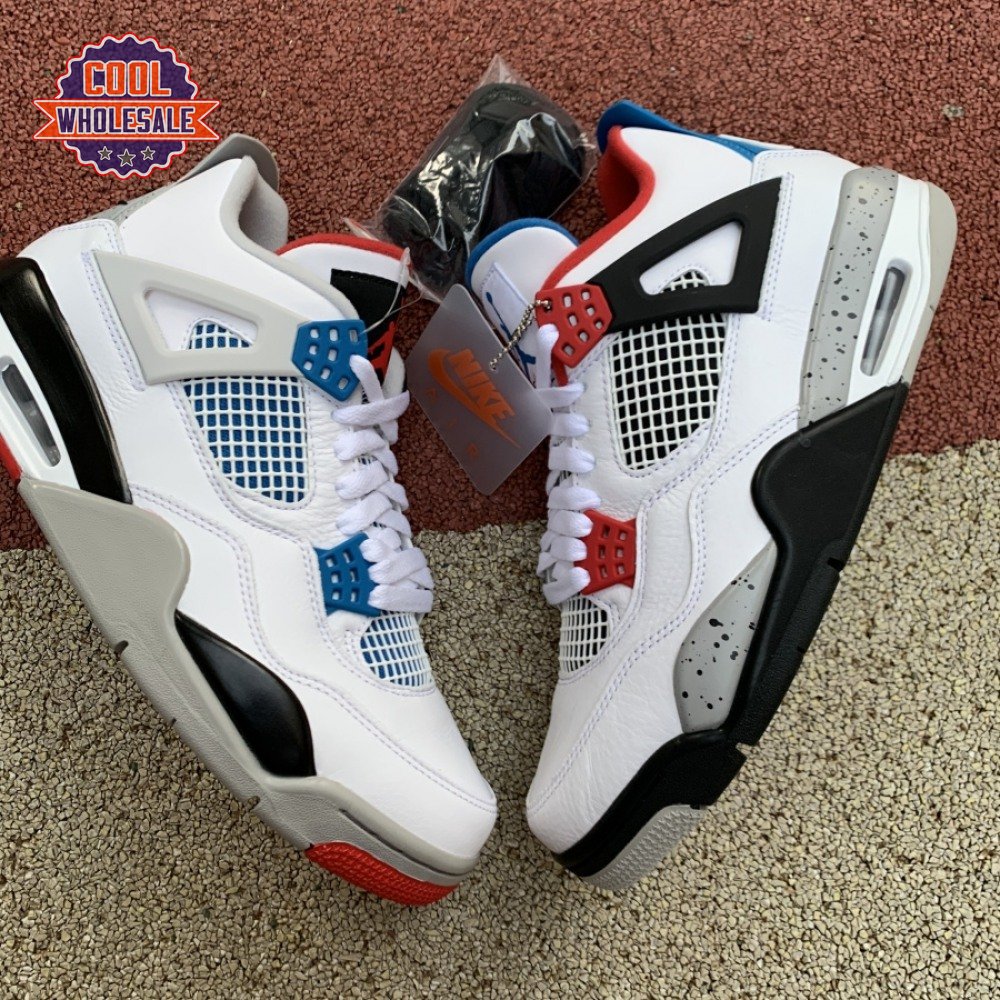 Released in November 2019, the Air Jordan 4 Retro SE 'What The 4' takes the original four colorways of the Air Jordan 4 and combines them in a 'What The' format that has been seen on several Nike silhouettes. This original color palette is realized on the entire shoe, with the beloved Varsity Red, Cement Grey and Military Blue that Jordan 4 fans recognize and love. The discordant aesthetic works across the leather uppers, signature lacing wings and Jumpman logos on the tongue and heel to create something familiar yet new.