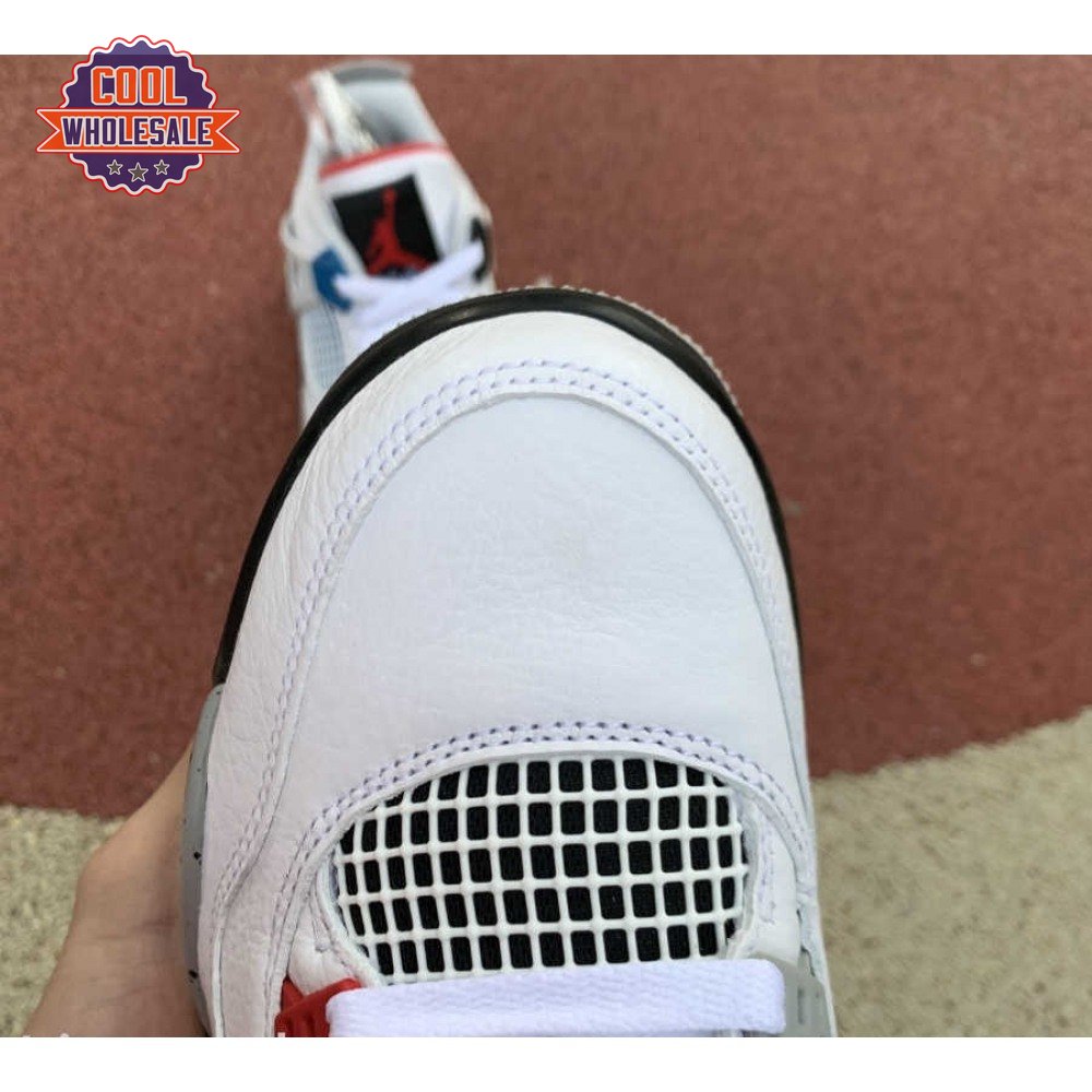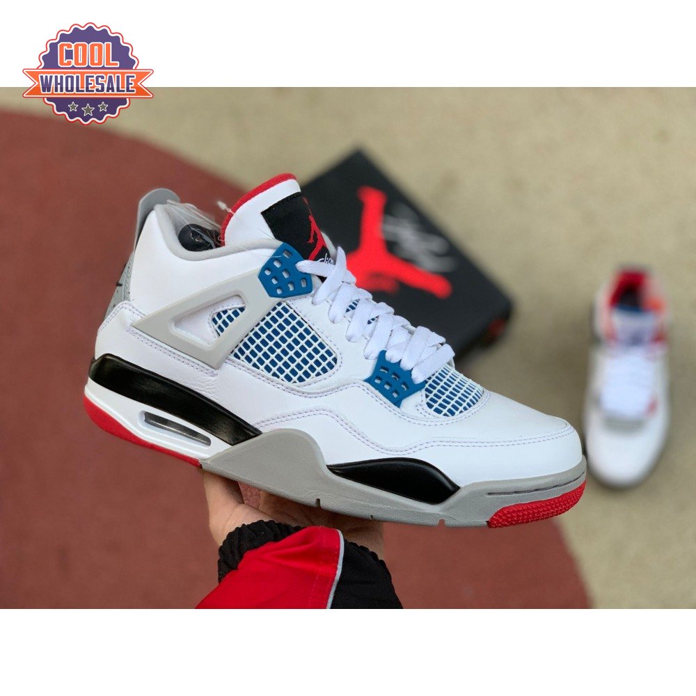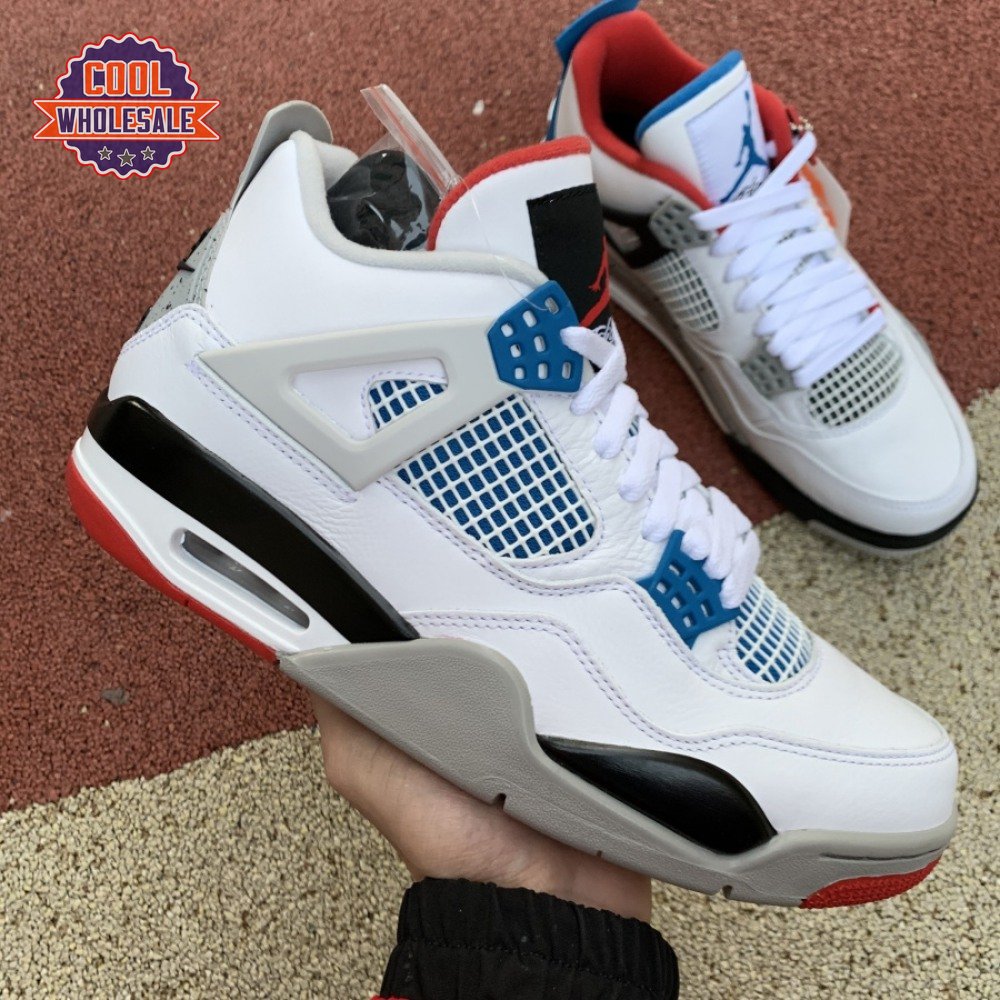 Released in November 2019, the Air Jordan 4 Retro SE 'What The 4' takes the original four colorways of the Air Jordan 4 and combines them in a 'What The' format that has been seen on several Nike silhouettes. This original color palette is realized on the entire shoe, with the beloved Varsity Red, Cement Grey and Military Blue that Jordan 4 fans recognize and love. The discordant aesthetic works across the leather uppers, signature lacing wings and Jumpman logos on the tongue and heel to create something familiar yet new.