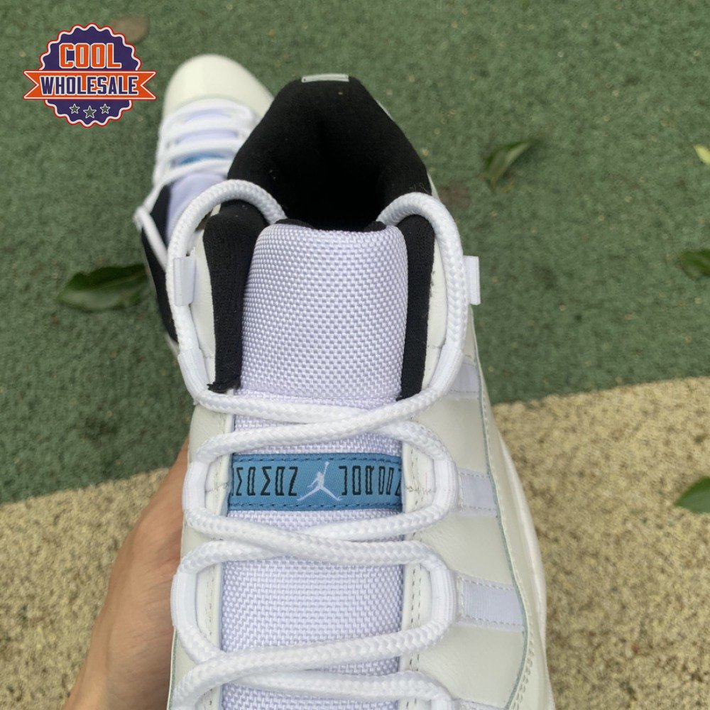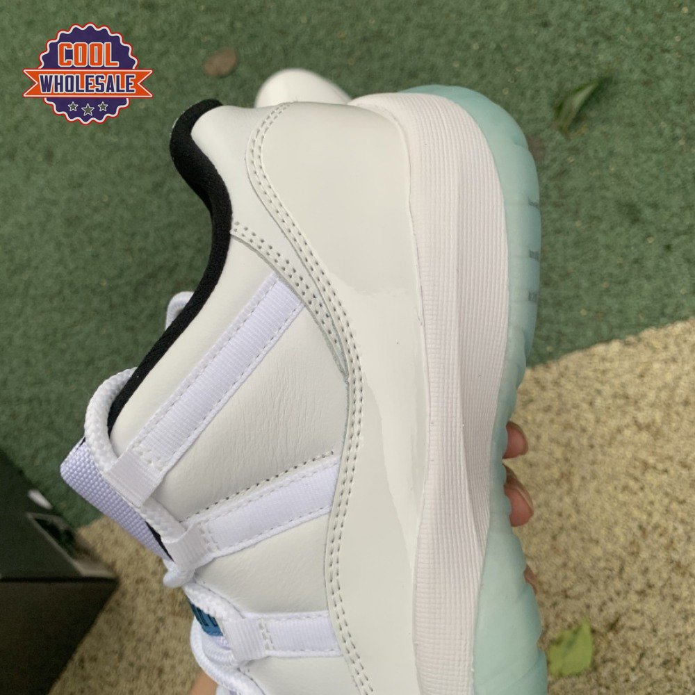 The Air Jordan 11 Retro Low "Legend Blue" delivers a low-top edition of the OG colorway that Michael Jordan unveiled at the 1996 NBA All-Star Game. The build is faithful to the original mid-top, featuring a white leather upper with a tonal patent leather mudguard and ballistic mesh tongue. A blue embroidered Jumpman at the heel gives the nod to MJ"s alma mater, while a "25" stamped on the sockliner references the 25th anniversary of the shoe"s worldwide debut.
