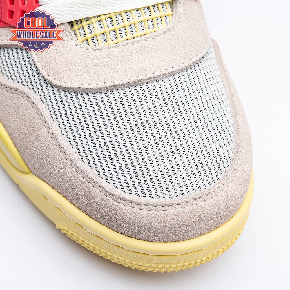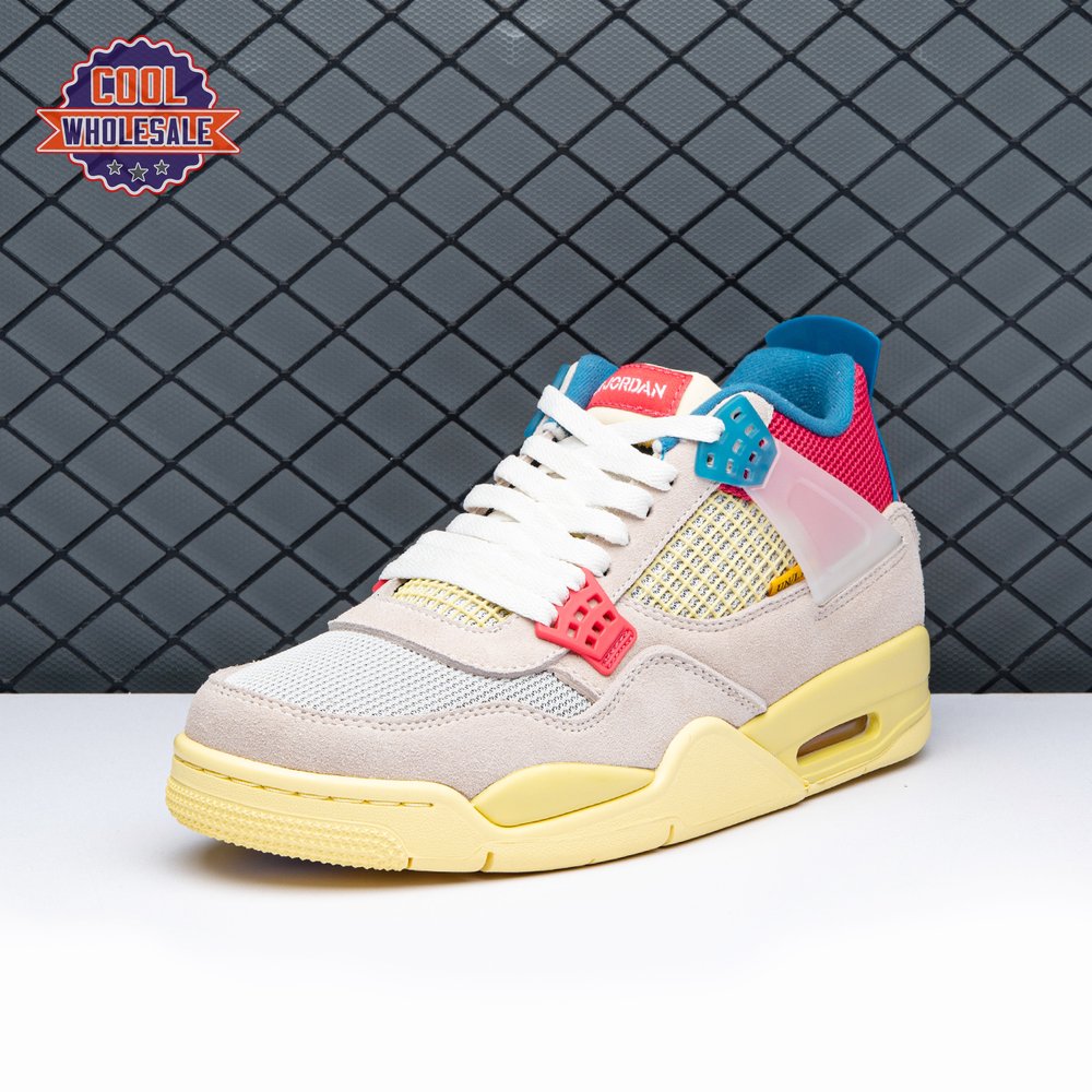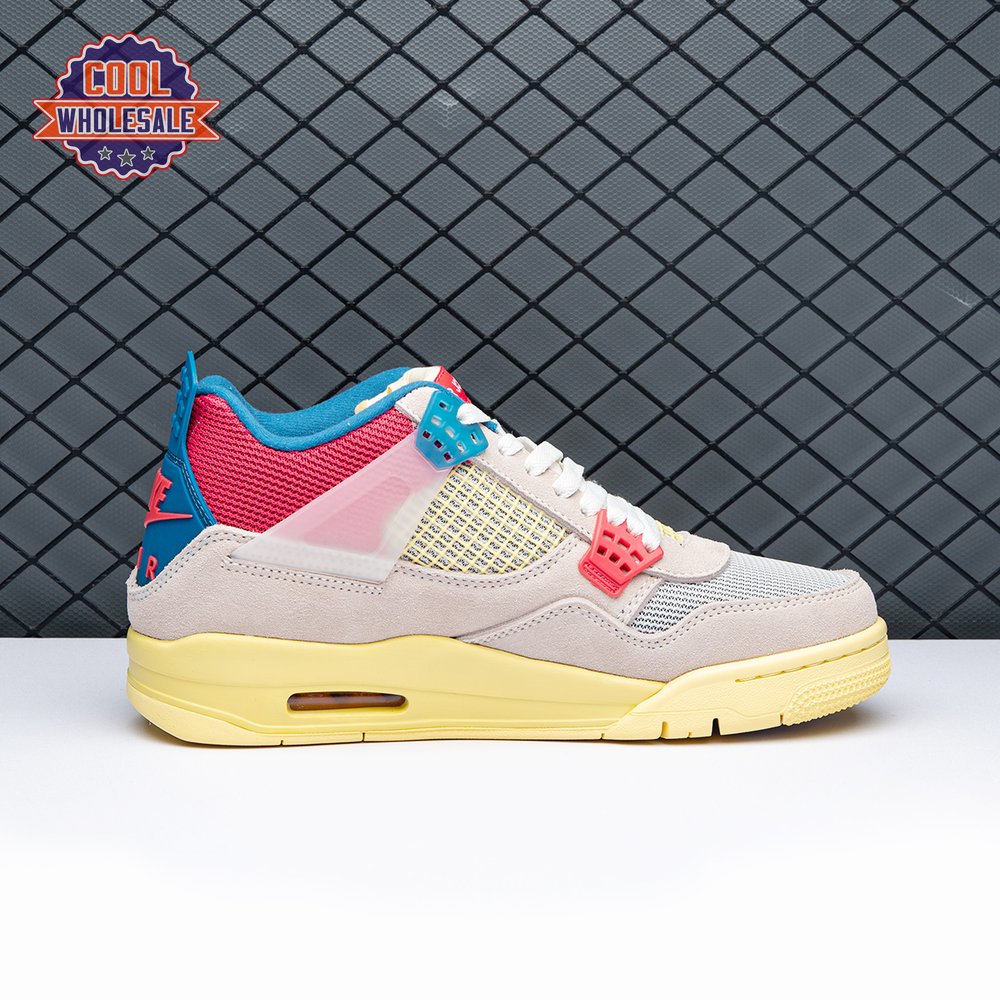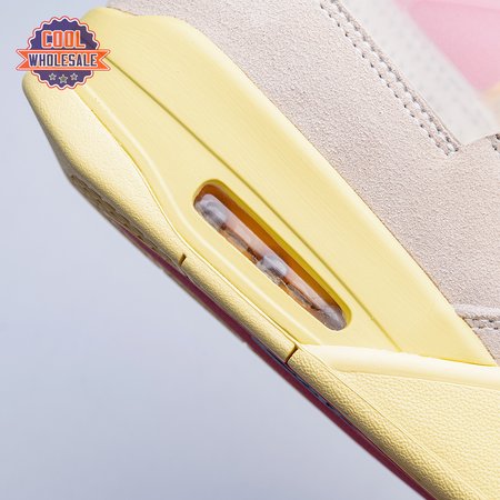 The sequel to the creative partners" Air Jordan 1 collaboration from 2018, the Union LA x Air Jordan 4 Retro "Guava Ice" delivers a vibrant take on the classic silhouette. The upper combines soft pink suede with breathable mesh on the collar and toe box. Semi-translucent TPU wings provide structural support, taking cues from an original Tinker Hatfield sketch. Additional branding hits include a yellow Union tab on the lateral quarter panel, Nike Air on the back heel and a woven Air Jordan tag atop the folded-over tongue.