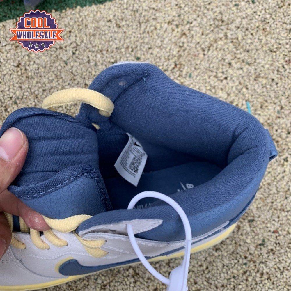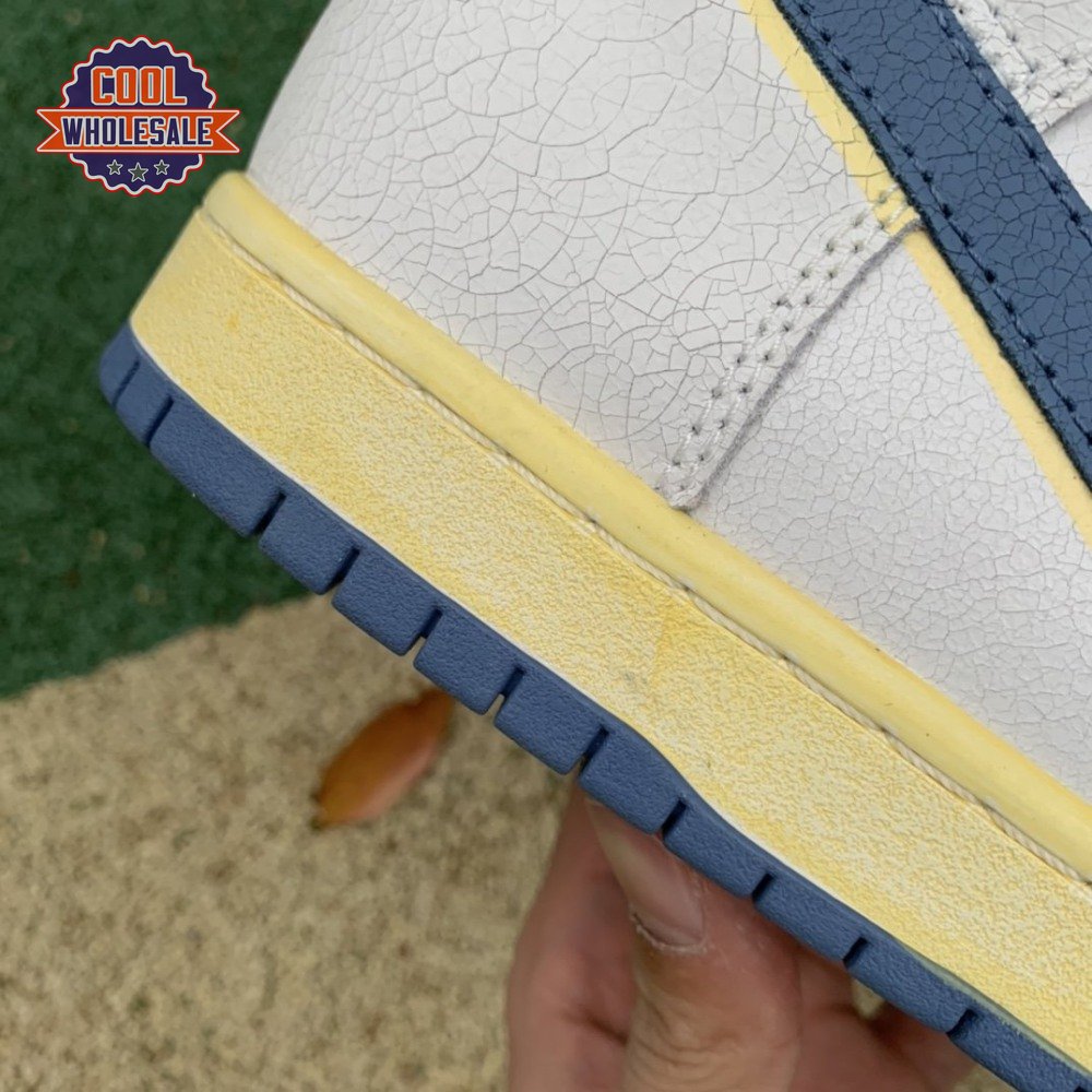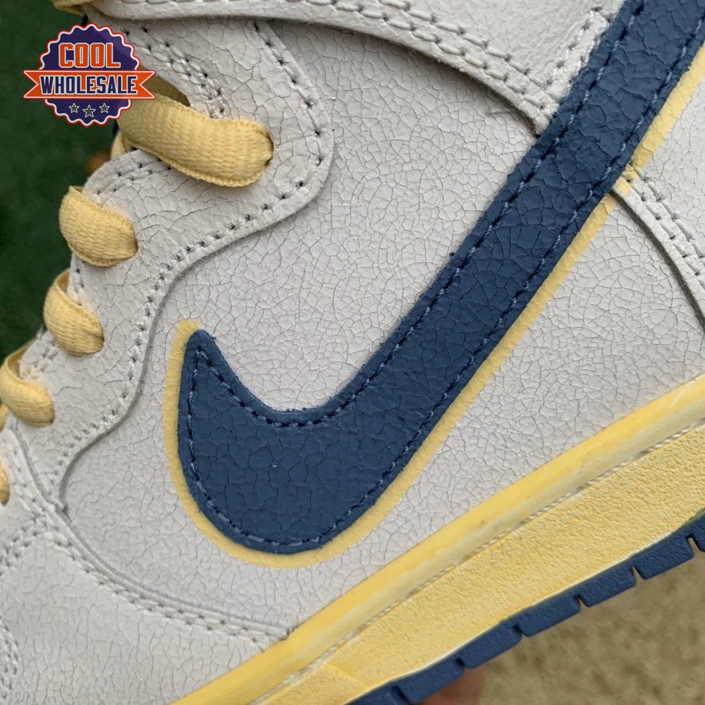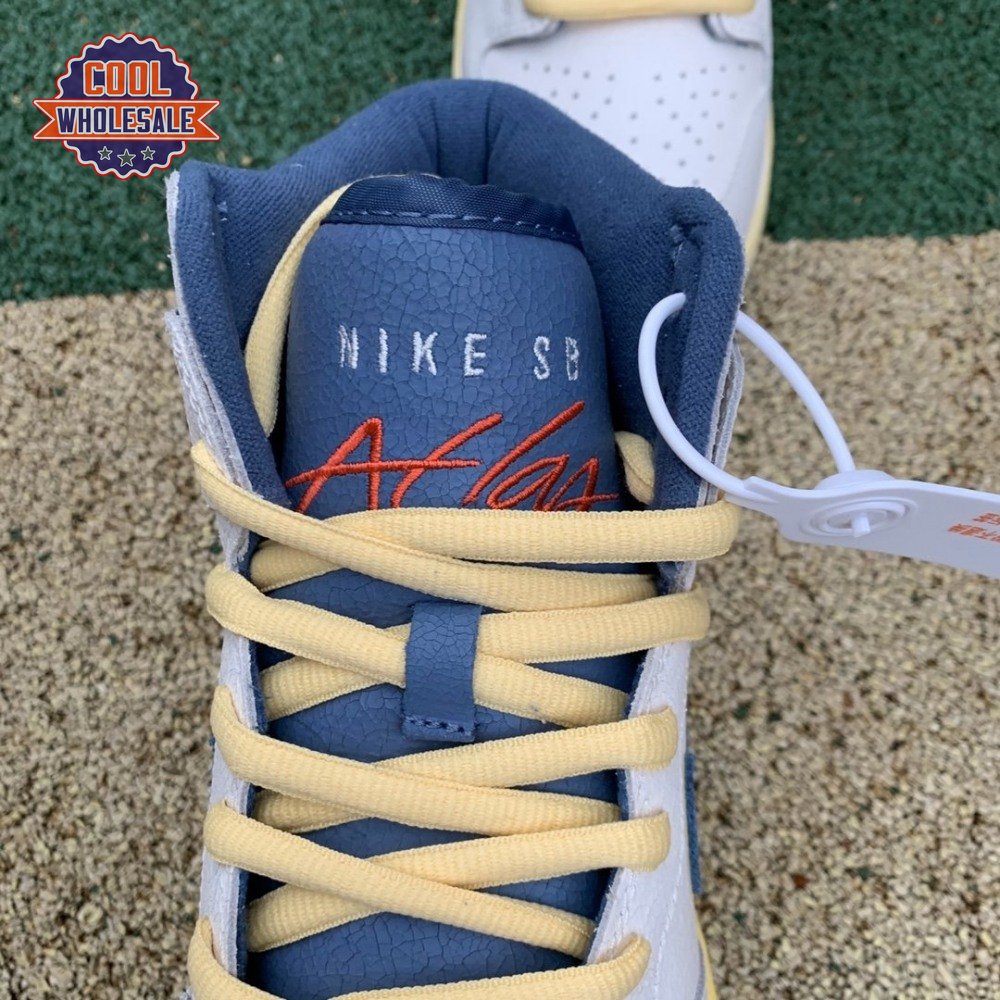 Made in collaboration with the Bay Area skate shop, the Atlas x Nike Dunk High SB "Lost at Sea" references a maritime mishap from 1990, when a freighter ship headed to Los Angeles from South Korea lost its cargo during a storm. The goods, including over 61,000 pairs of Nikes, would eventually wash up on various coastlines, including the Air Flight 90 in the San Francisco Bay. That shoe serves as the design inspiration for this collaboration, featuring an off-white cracked leather upper with contrasting blue accents and a pre-yellowed midsole. Atlas branding on the tongue mimics Nike"s retro Flight logo.