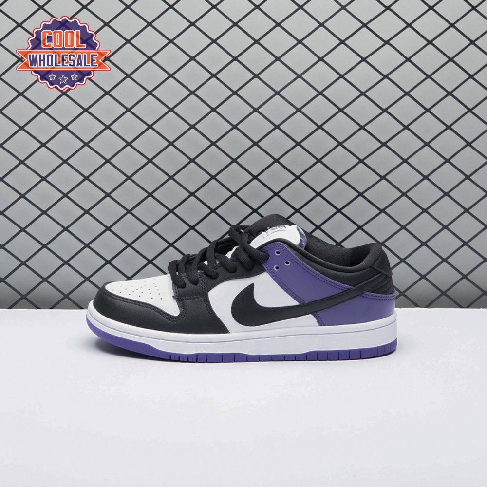 The Nike Dunk Low SB "Court Purple" delivers a straightforward colorway of the classic silhouette, redolent of the brand"s pink and silver box eras. The low-top makes use of a white leather upper with contrasting black overlays on the forefoot, eyestay and collar. A heel overlay in Court Purple is matched by the rubber outsole, featuring a grippy traction pattern originally designed for the hardwood. Zoom Air cushioning in the sockliner combines with a stuffed tongue to provide enhanced comfort.