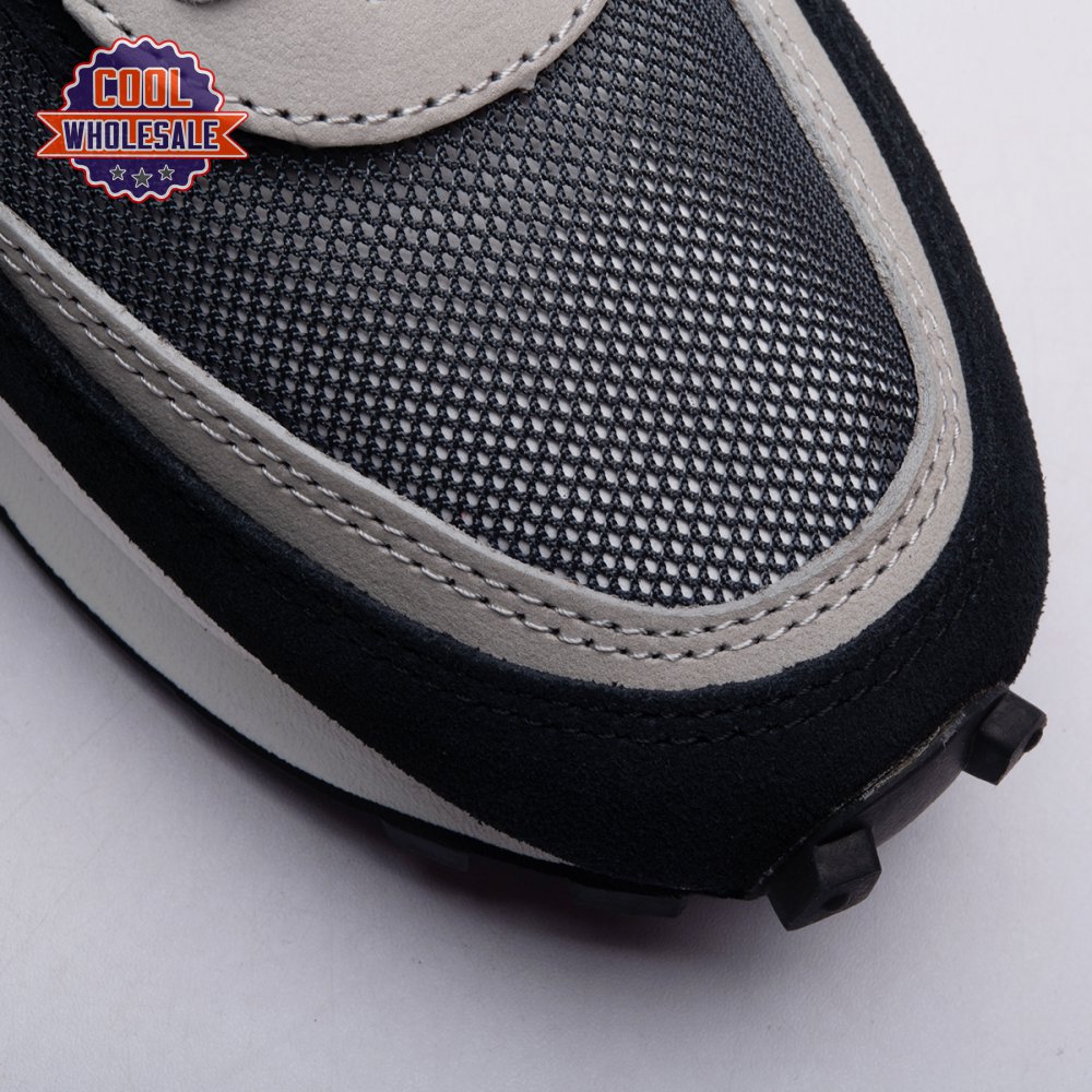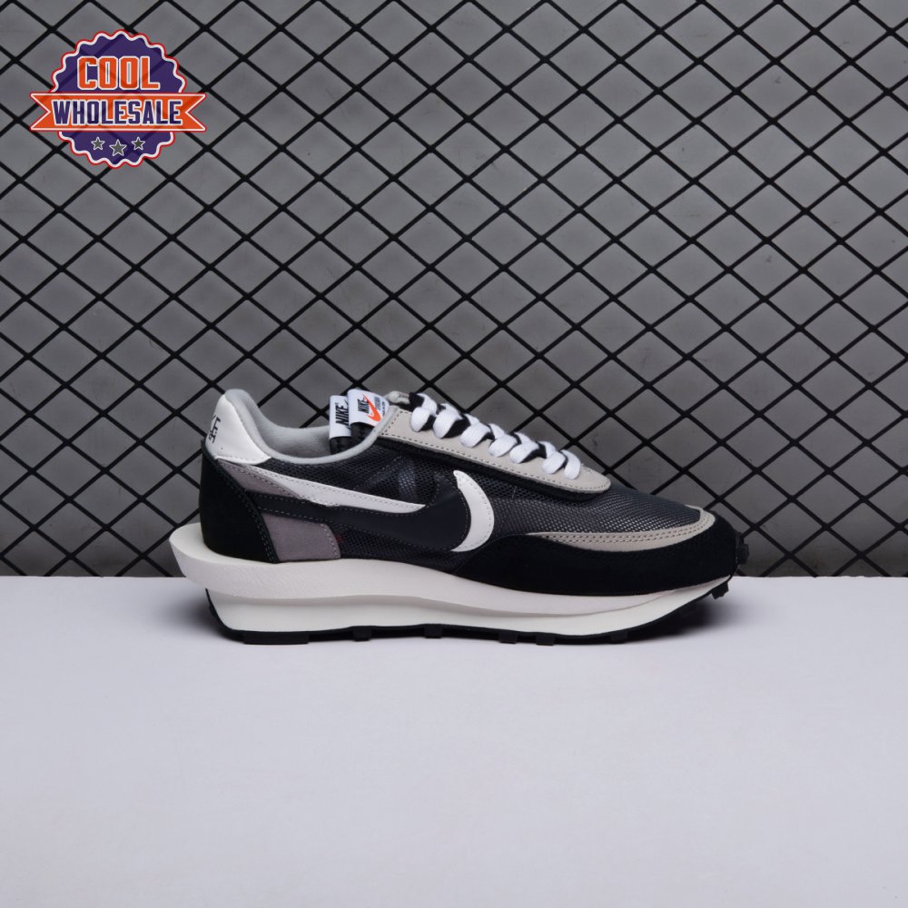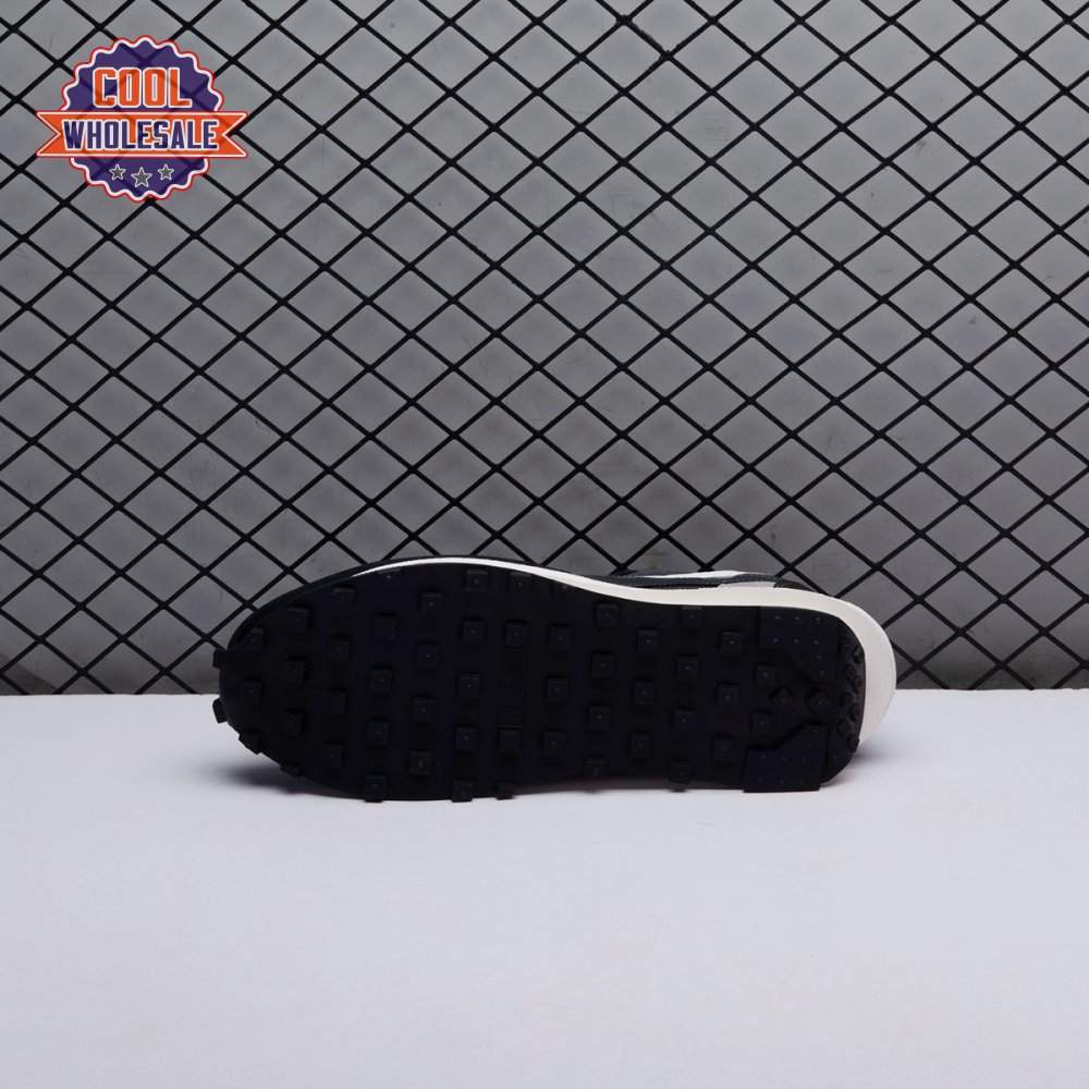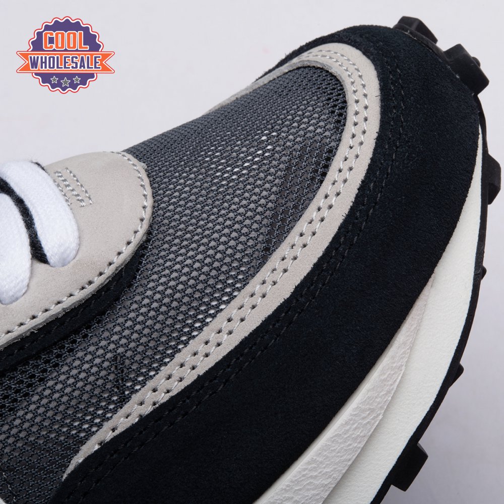 A hybrid of two iconic Nike runners, the Sacai x LDWaffle is an experimental design typical of the Japanese fashion label's provocative aesthetic. This 'Black' version"revealed in September 2019"is executed in mesh with two-tone suede at the toe, eyestays and counter. The concept of duality is furthered by leather Swooshes, paired tongues and co-branding on the heel. A dual sculpted midsole is layered above a traditional rubber waffle outsole.