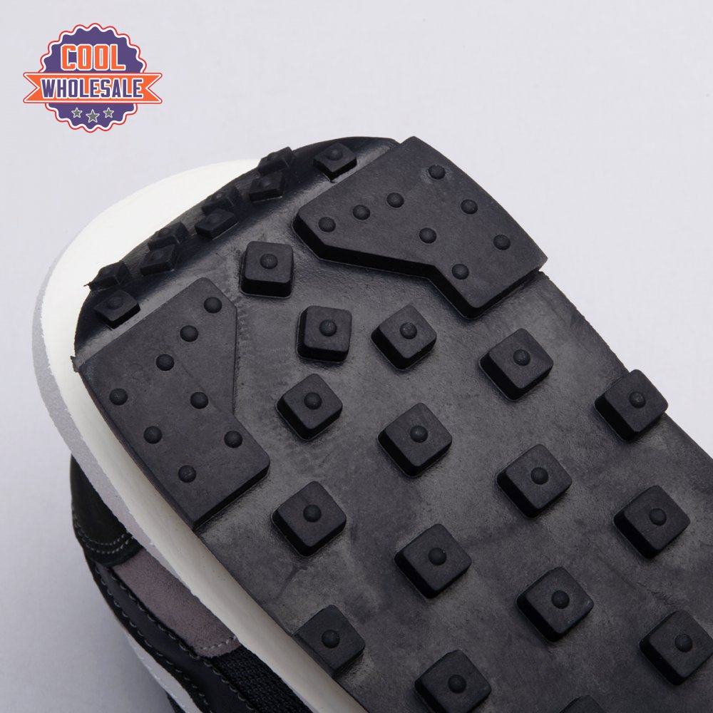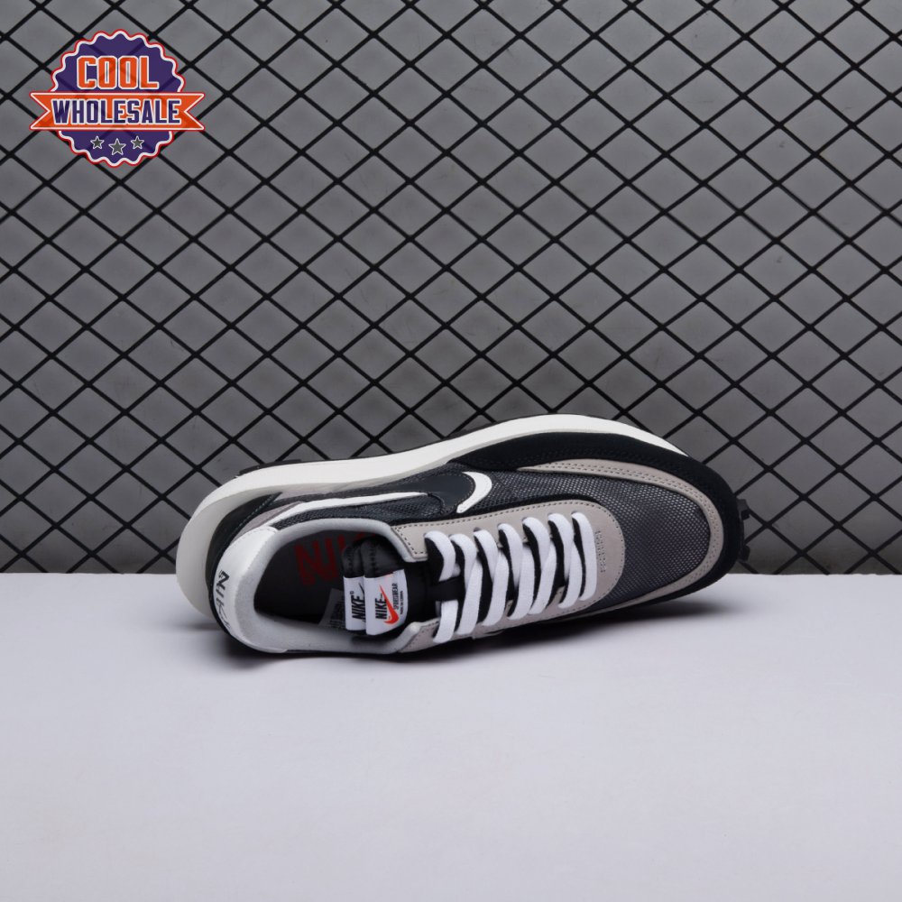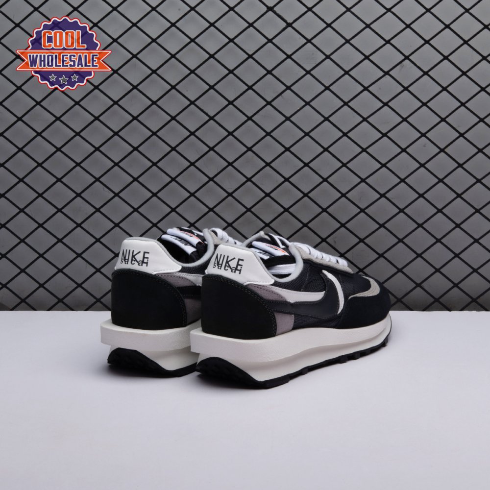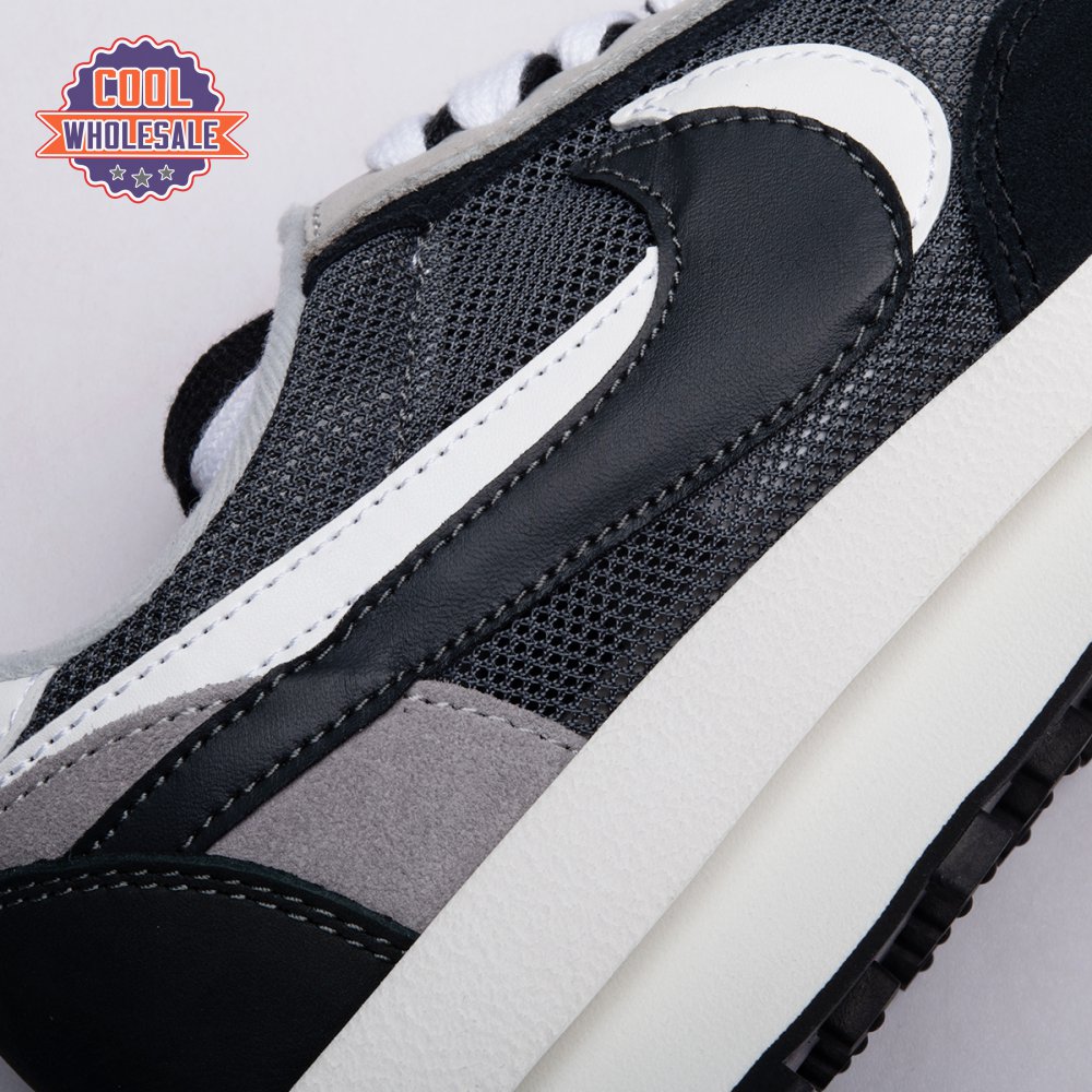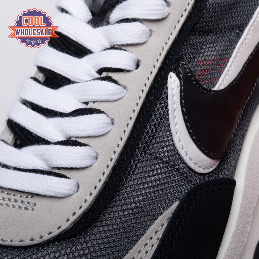 A hybrid of two iconic Nike runners, the Sacai x LDWaffle is an experimental design typical of the Japanese fashion label's provocative aesthetic. This 'Black' version"revealed in September 2019"is executed in mesh with two-tone suede at the toe, eyestays and counter. The concept of duality is furthered by leather Swooshes, paired tongues and co-branding on the heel. A dual sculpted midsole is layered above a traditional rubber waffle outsole.