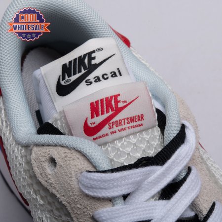 Made in partnership with the progressive Japanese fashion label, the Sacai x Nike VaporWaffle "Black White" repeats many of the design tropes introduced on the brands" LDV Waffle collaboration from 2019. They include doubled tongues, doubled Swooshes and a stacked midsole, updated here with split construction at the heel. Up top, open off-white mesh is fortified with tonal suede overlays and a red leather heel tab marked with dual Nike and Sacai branding.