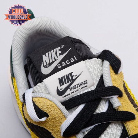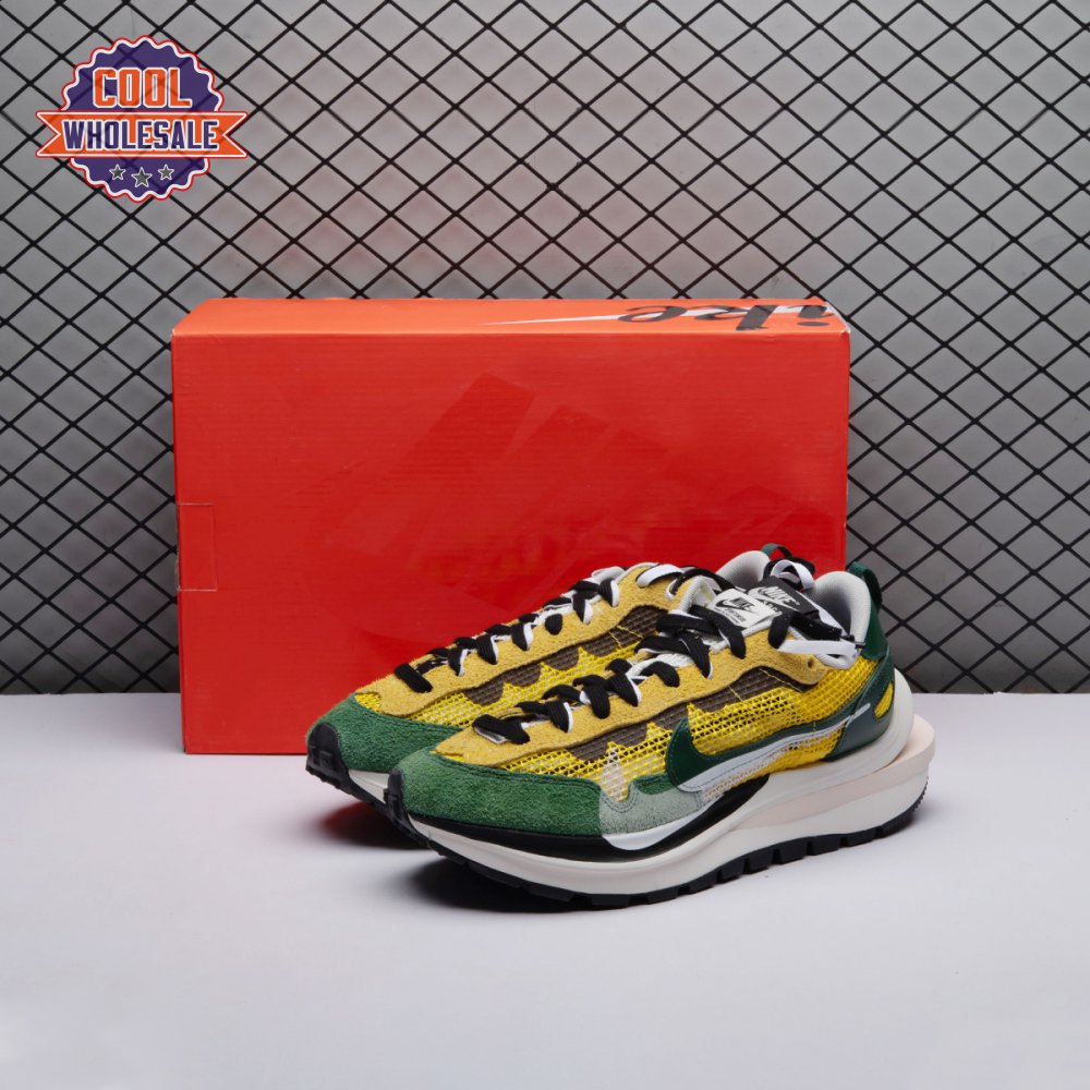 Made in partnership with the progressive Japanese fashion label, the Sacai x Nike VaporWaffle "Tour Yellow" picks up from where the brands" 2019 LDV Waffle collaboration left off. Like its predecessor, this pair doubles up on the tongue, laces and Swoosh branding. A breathable yellow mesh build, fortified with teal overlays in leather and suede, rides on a stacked midsole with split construction at the heel. Nike"s signature waffle outsole delivers grippy traction.