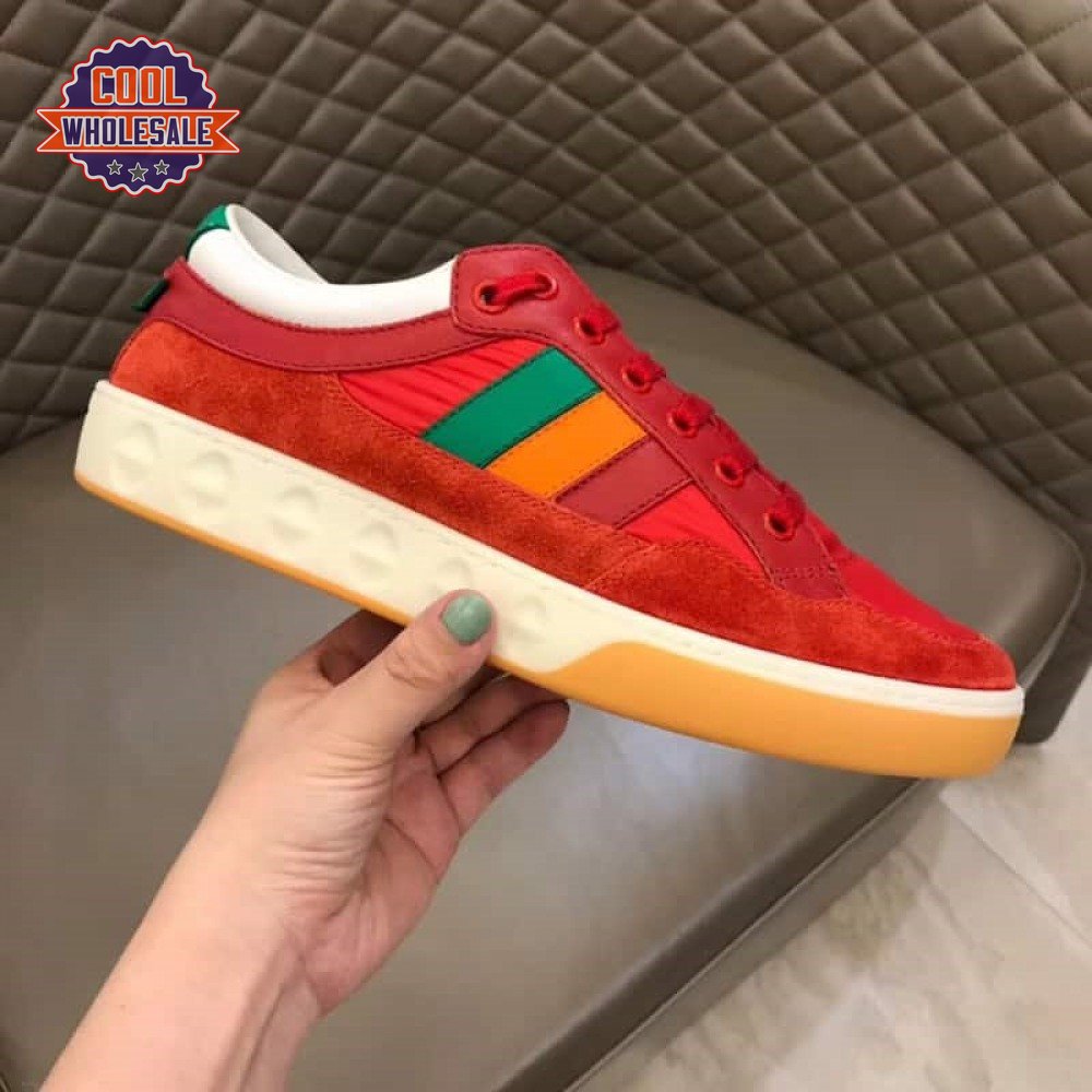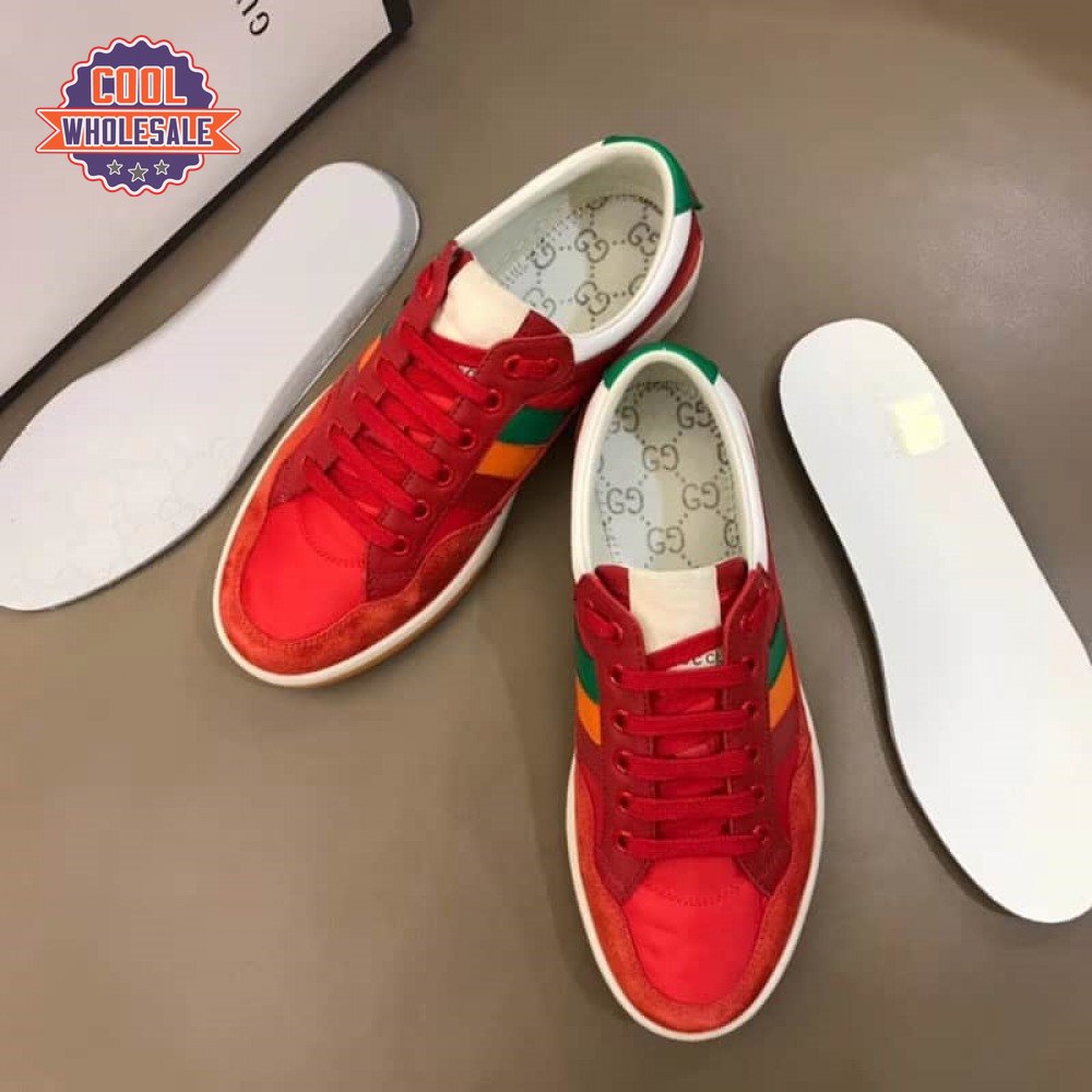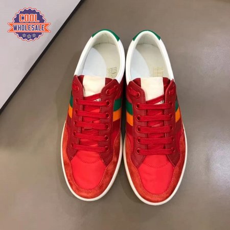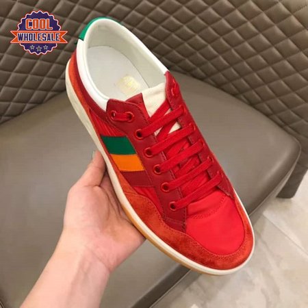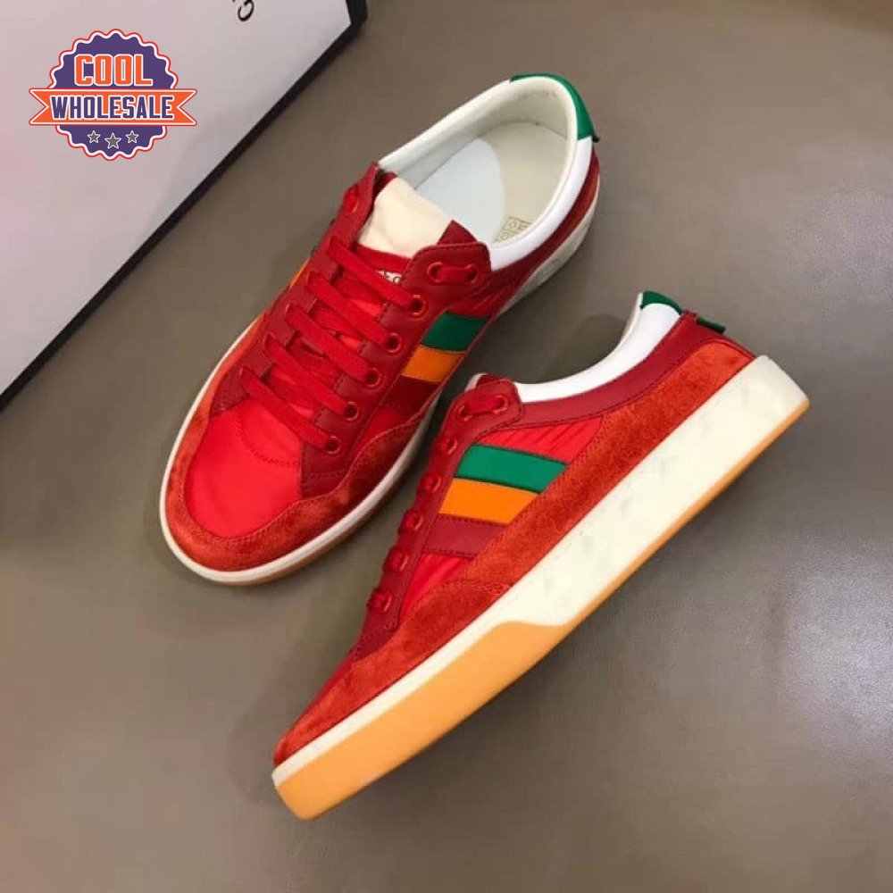 GUCCI MEN'S RED LEATHER AND NYLON SNEAKERS - GC62