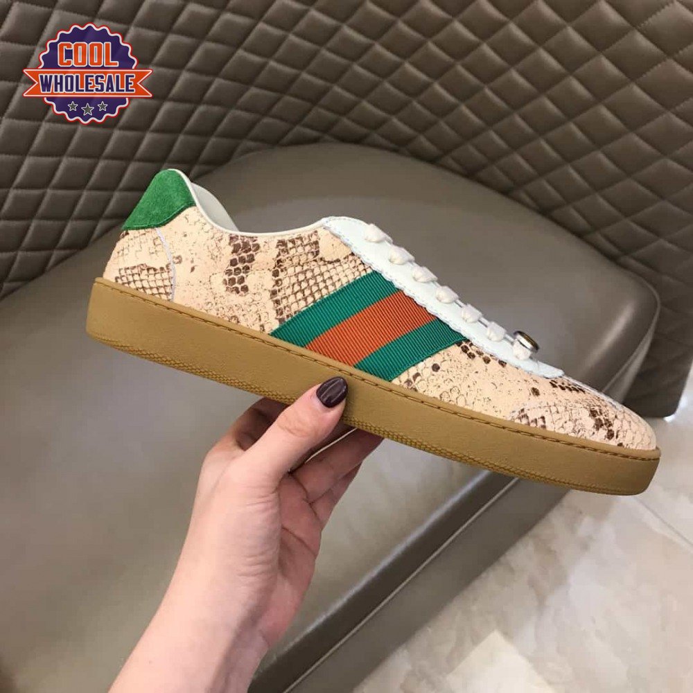 GUCCI MEN'S NATURAL G74 PYTHON TRAINER WITH WEB - GC35
