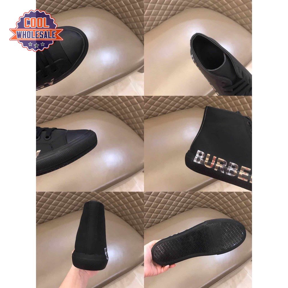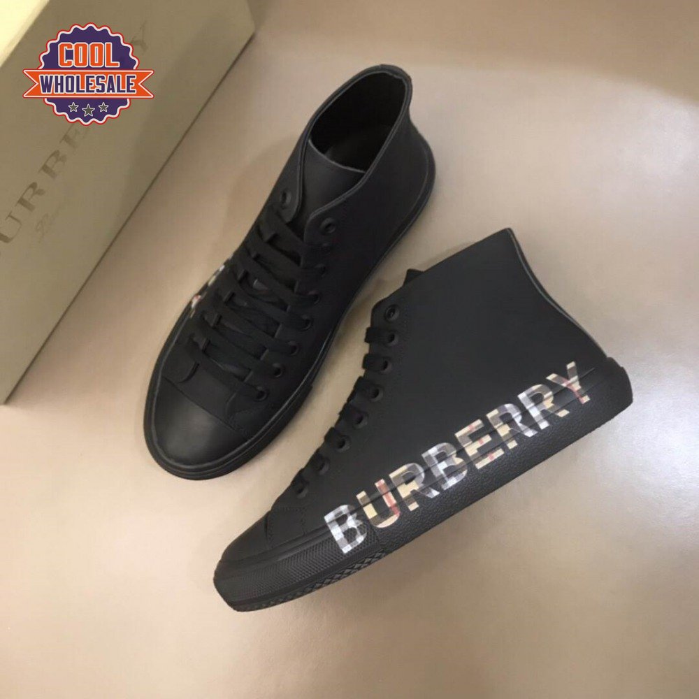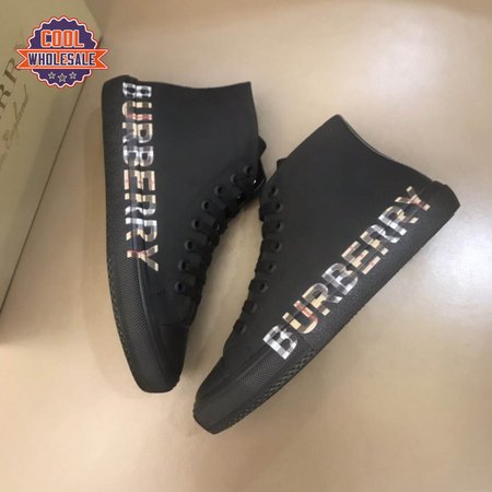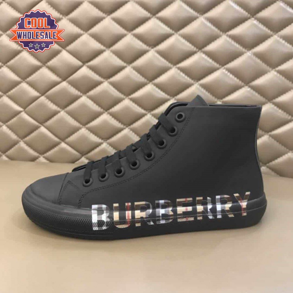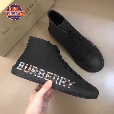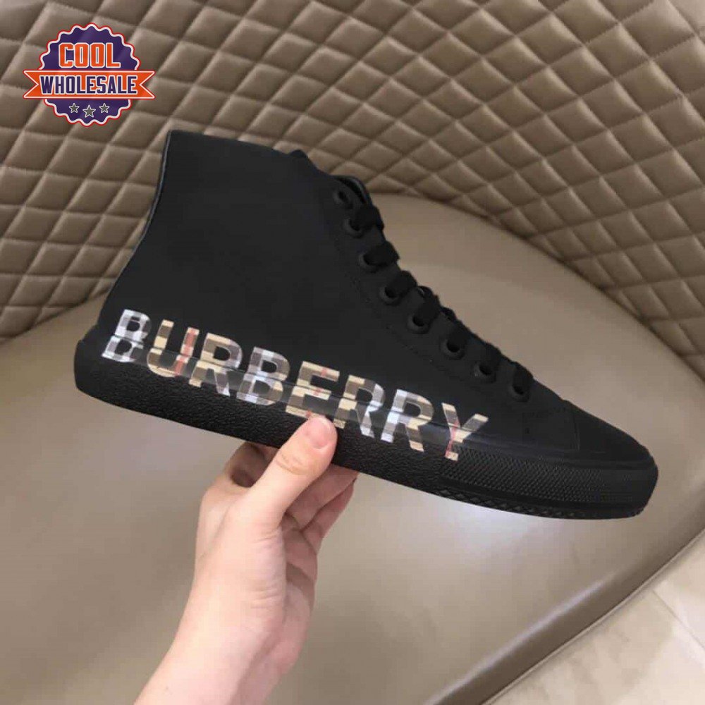 BURBERRY LOGO PRINT GABARDINE HIGH-TOP SNEAKERS - BBR82