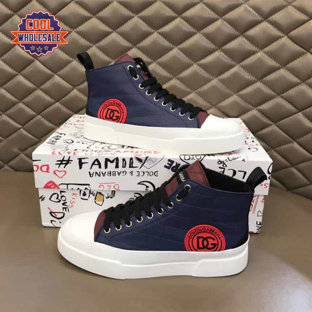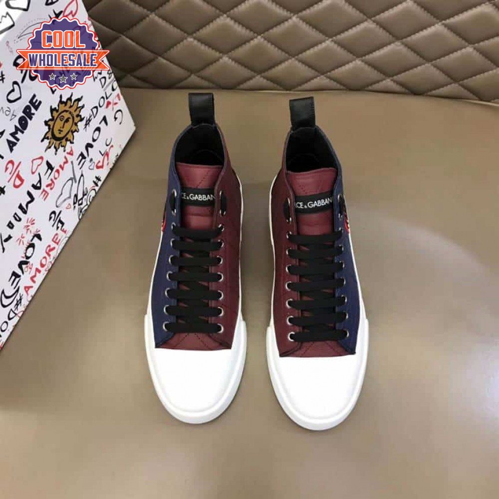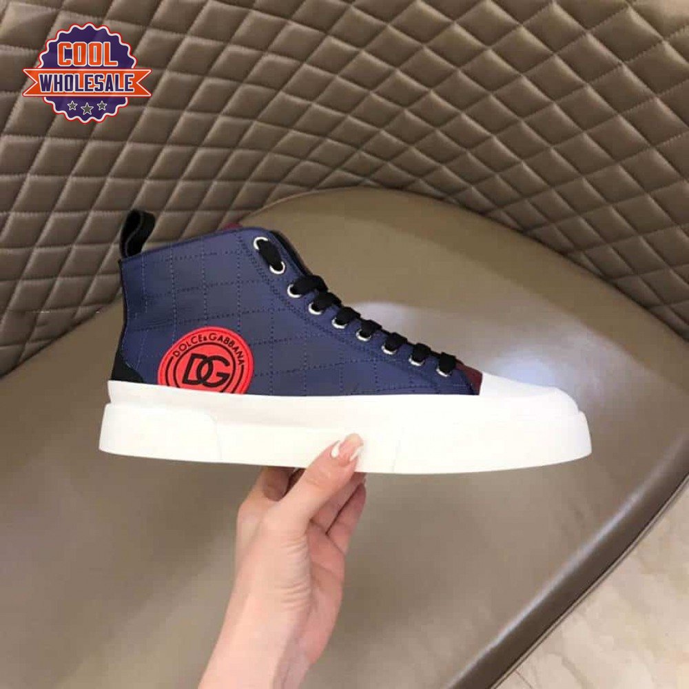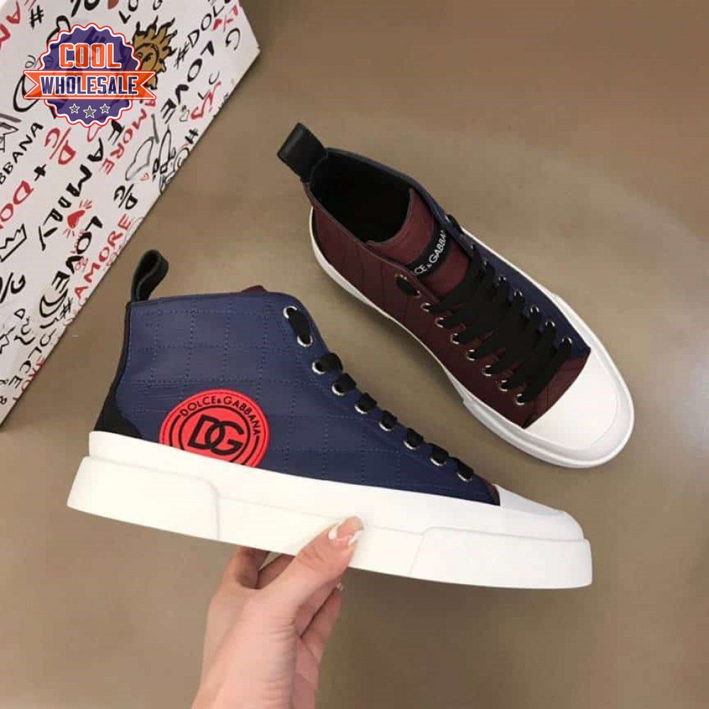 DOLCE AND GABBANA QUILTED TWO-TONE NYLON PORTOFINO LIGHT MID-TOP SNEAKERS - DG105