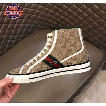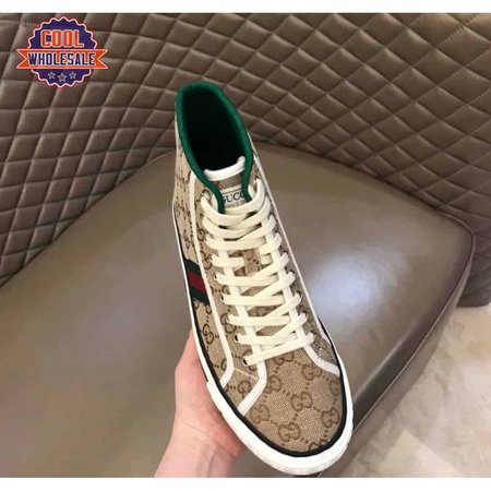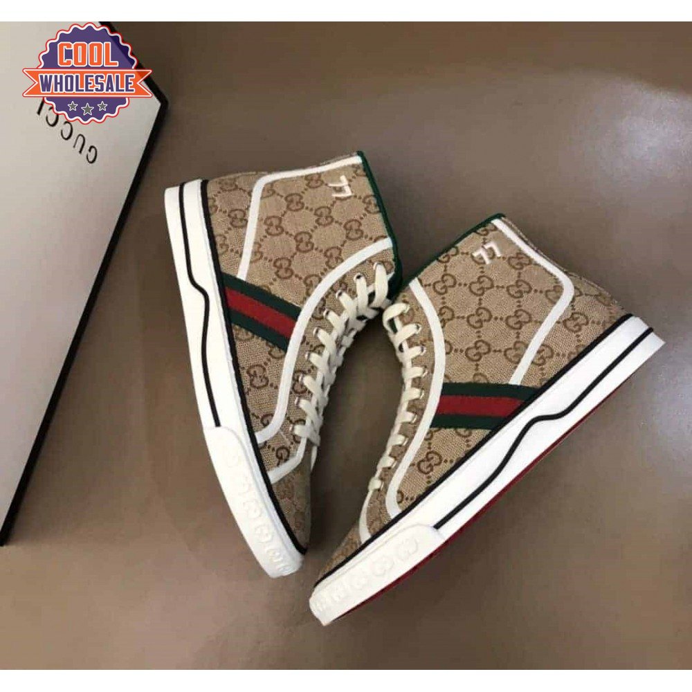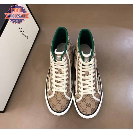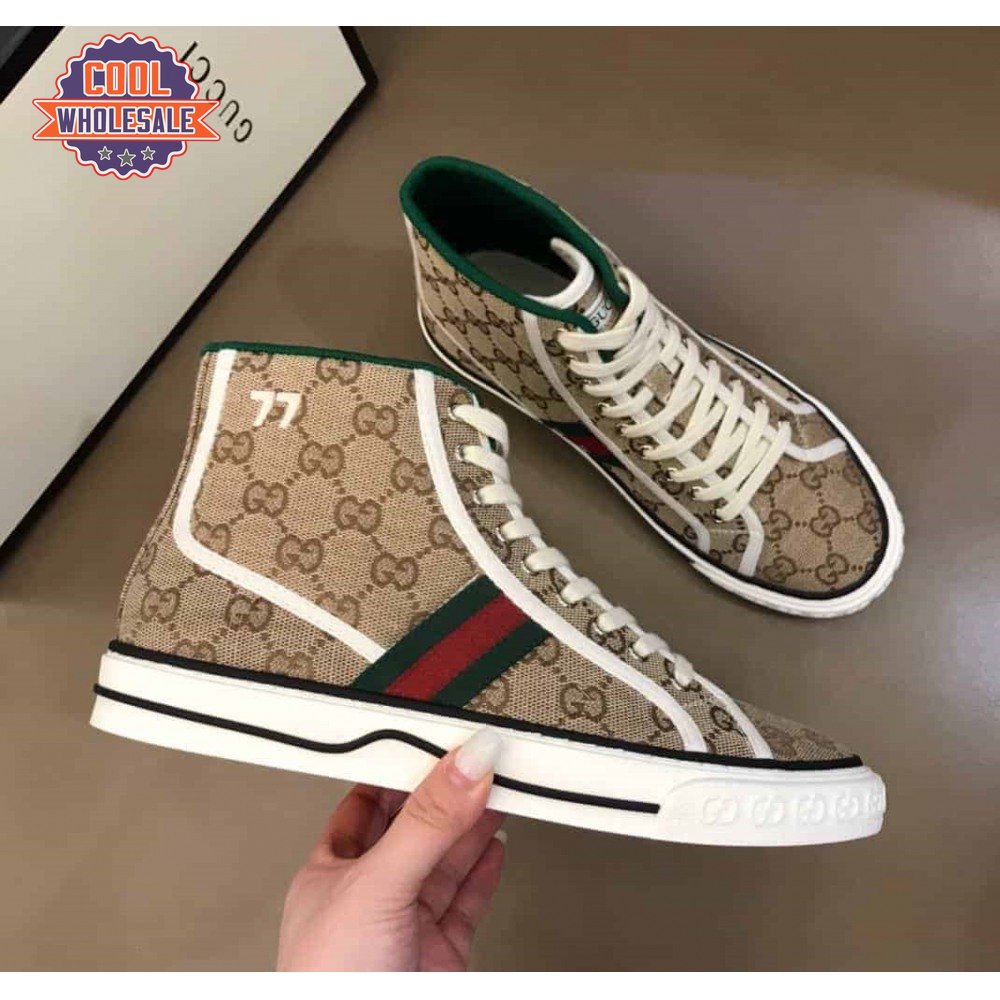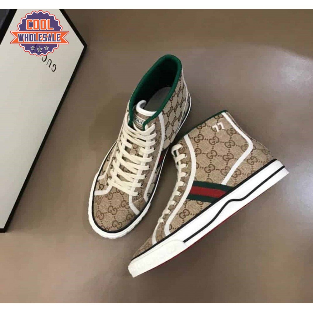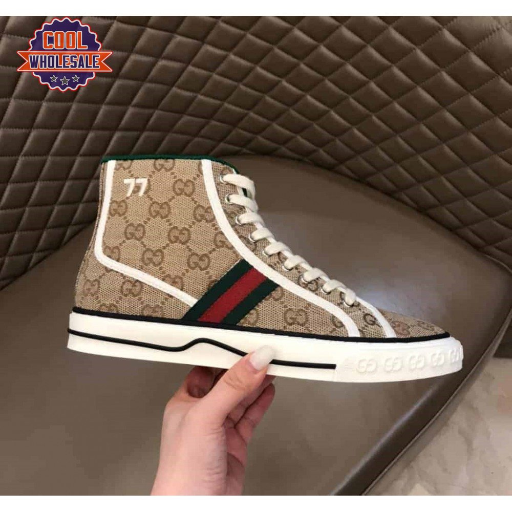 GUCCI TENNIS 1977 HIGH-TOP SNEAKERS IN BEIGE AND EBONY GG CANVAS - GC100