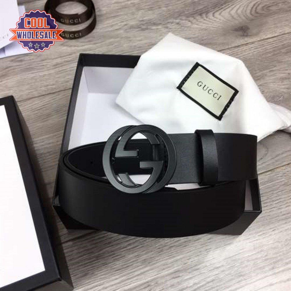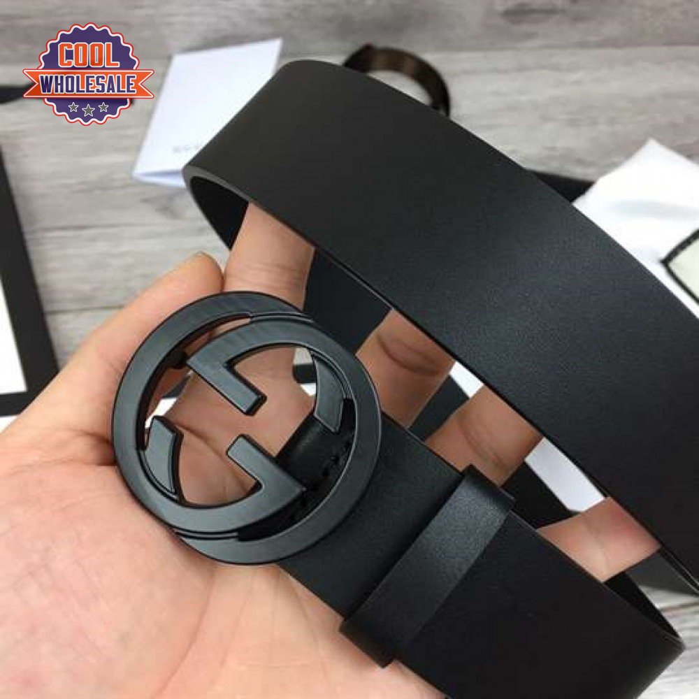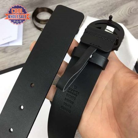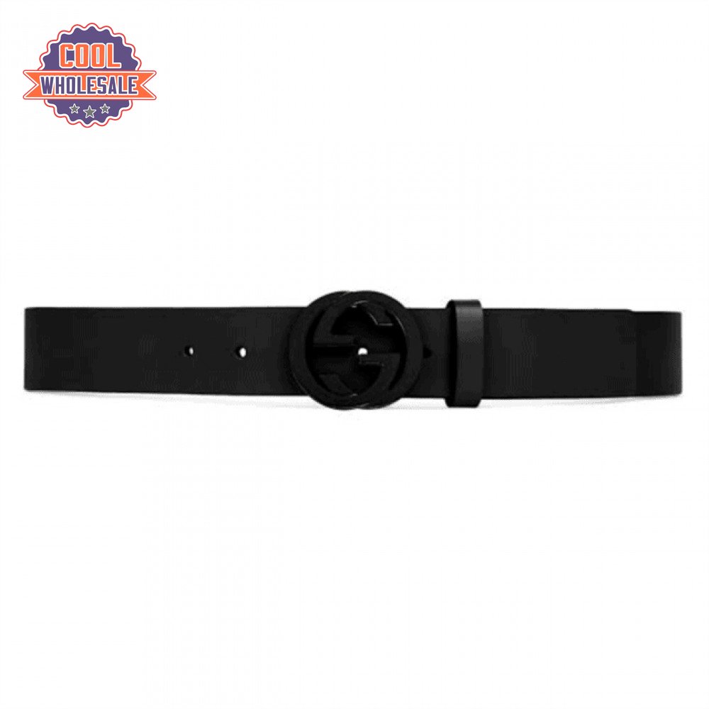 GUCCI LEATHER BELT WITH INTERLOCKING G BUCKLE - B31