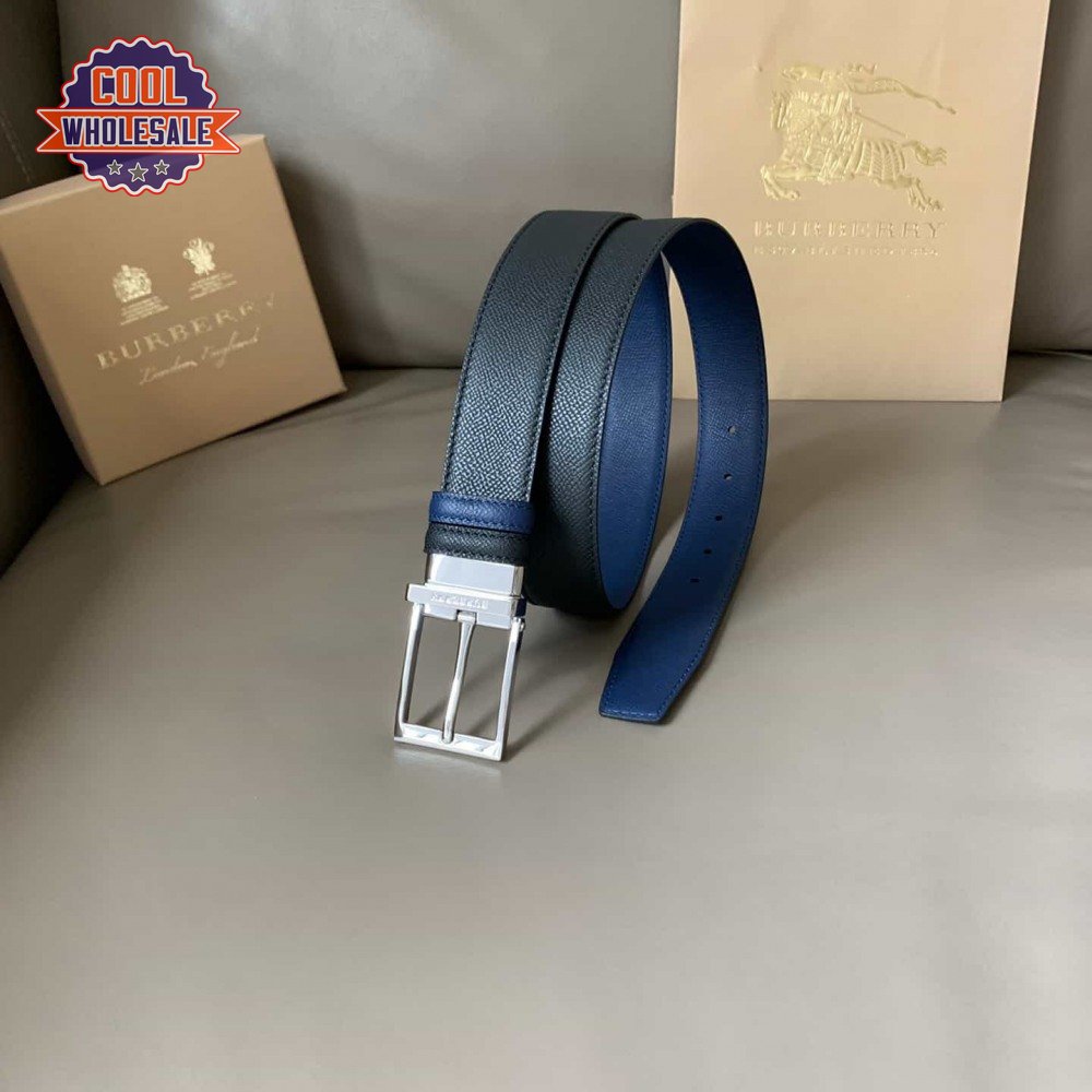 BURBERRY REVERSIBLE LONDON CHECK AND LEATHER BELT DARK CHARCOALBLACK - B29