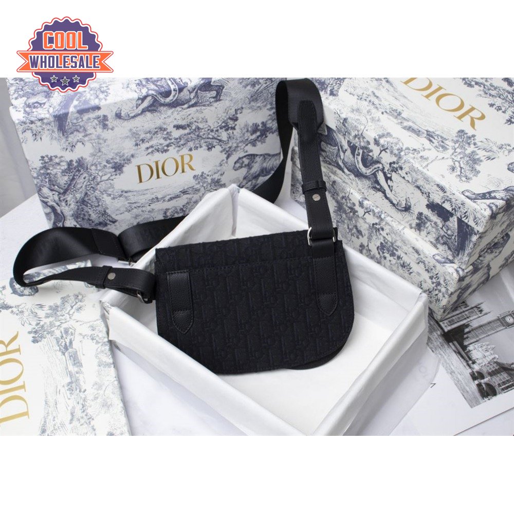 Saddle Pouch Black Dior Oblique Jacquard - DMB004