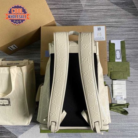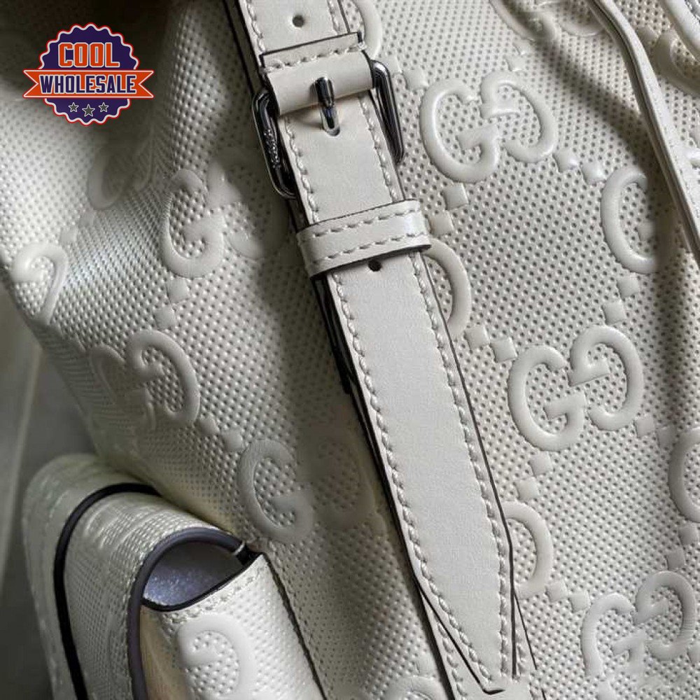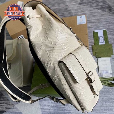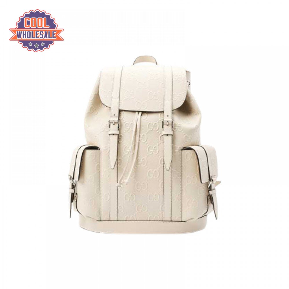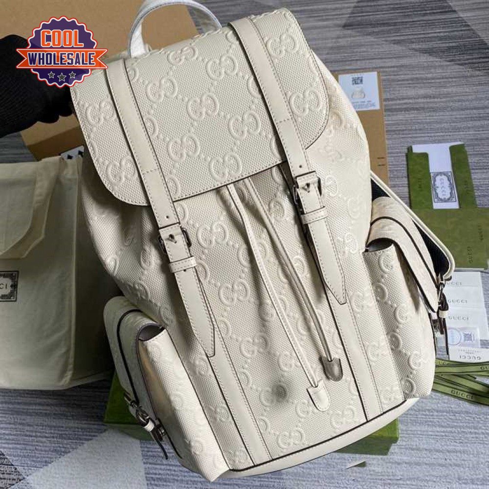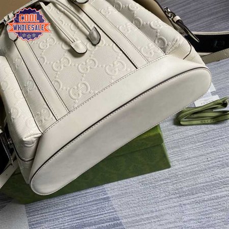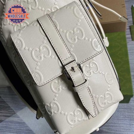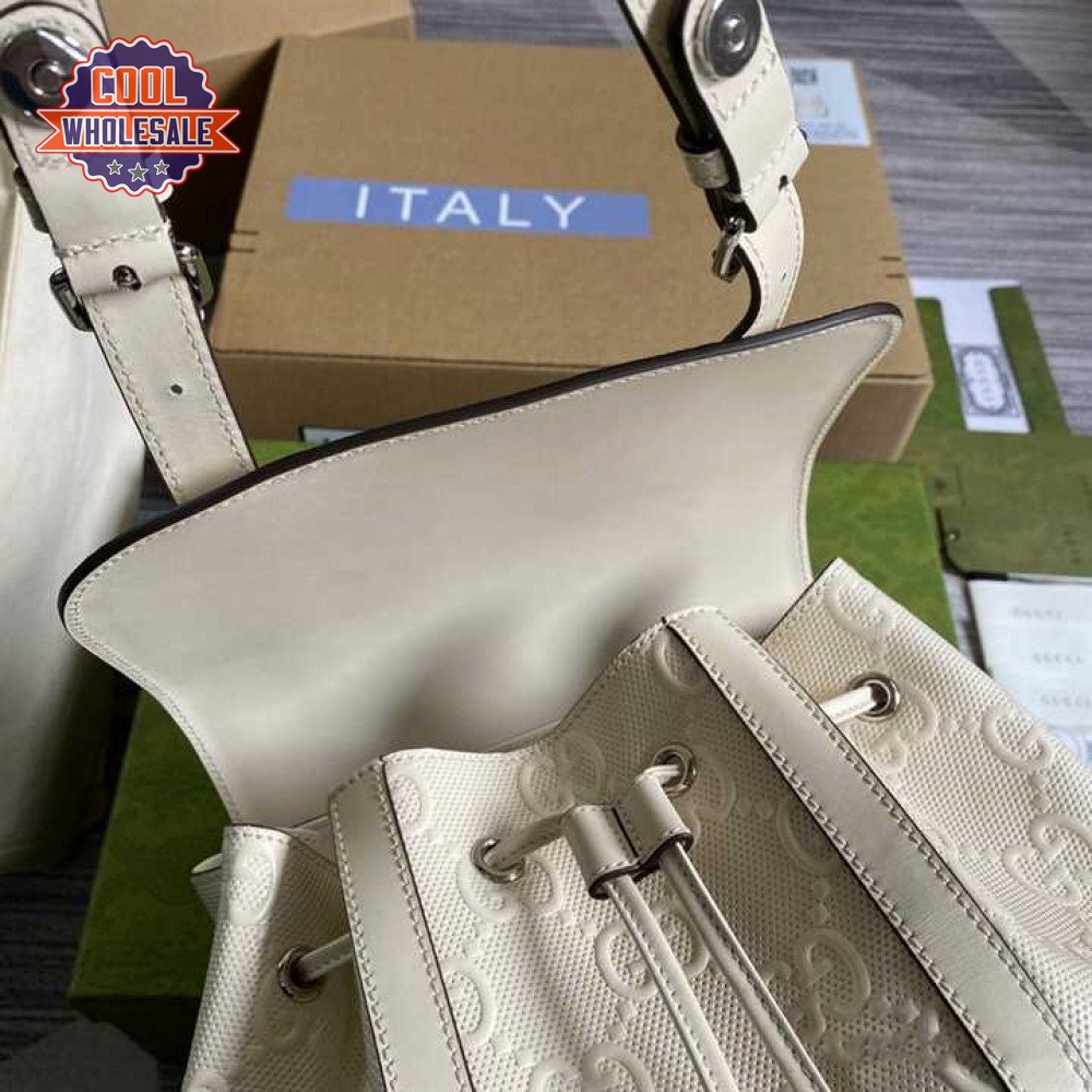 Gg Embossed Backpack In White Leather GBP013
