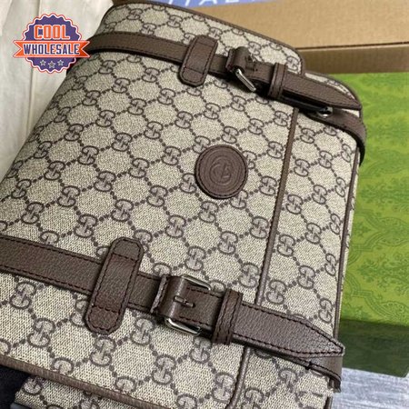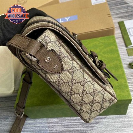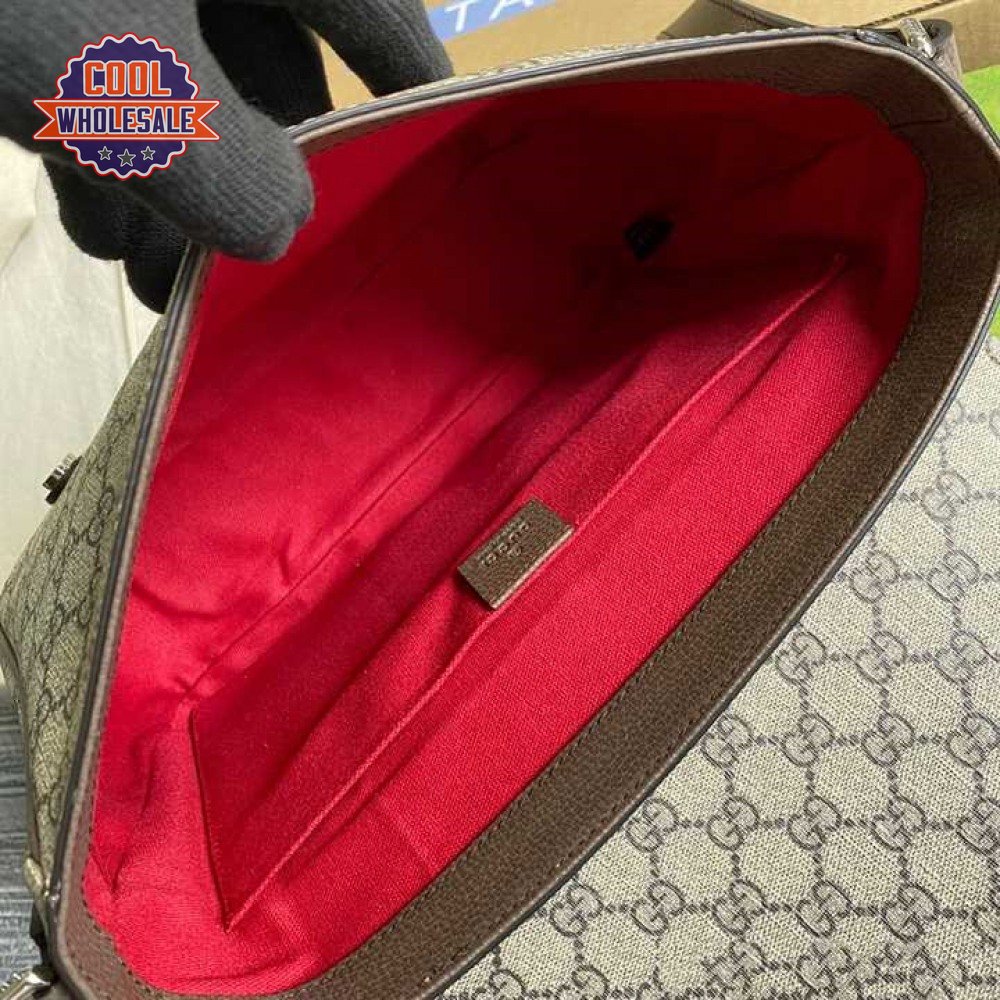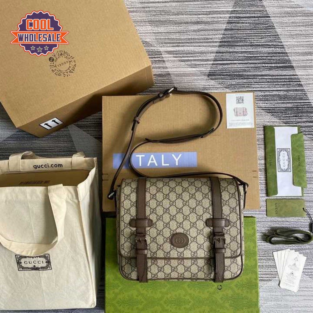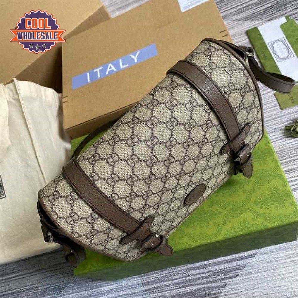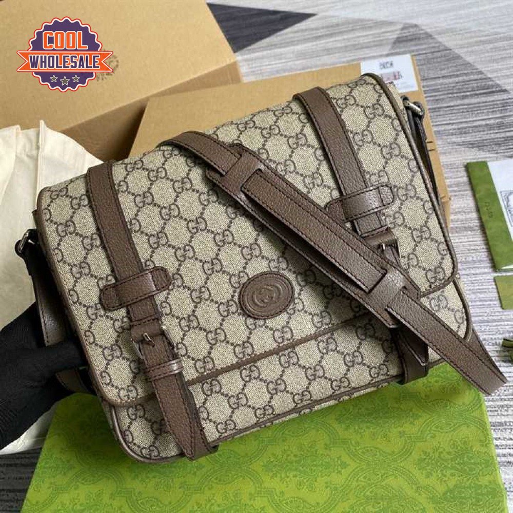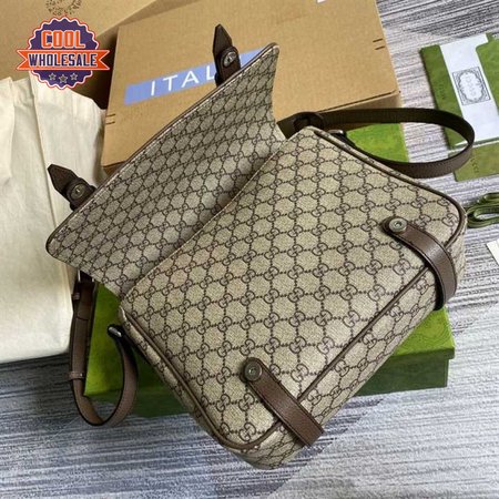 Gucci Messenger Bag Beige/Ebony Gg Supreme Canvas Brown Leather Trim GMB008