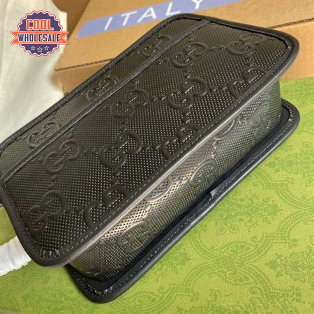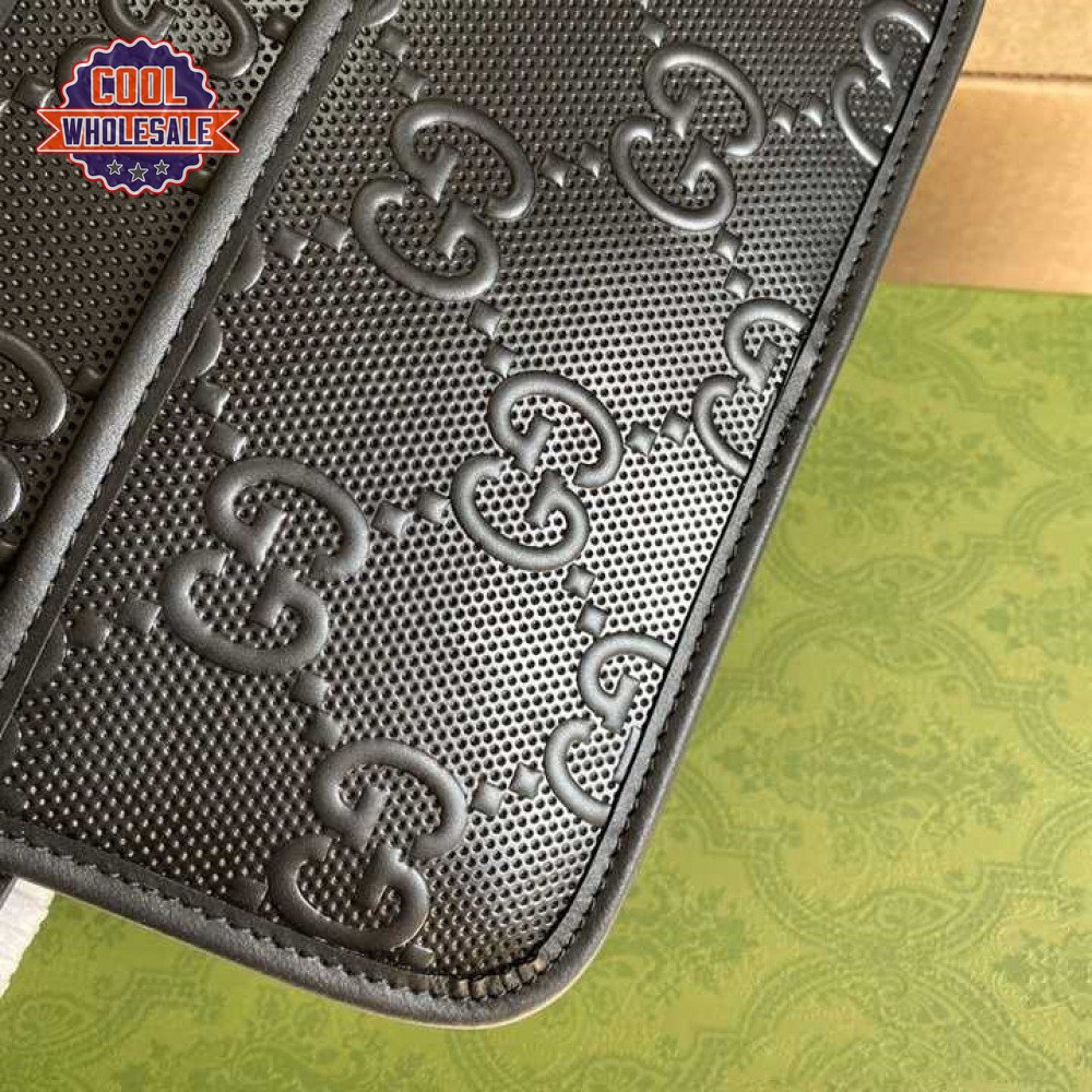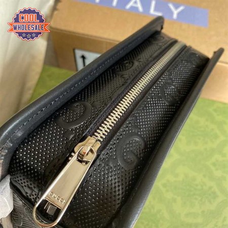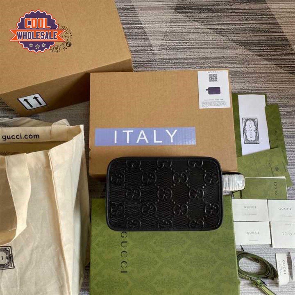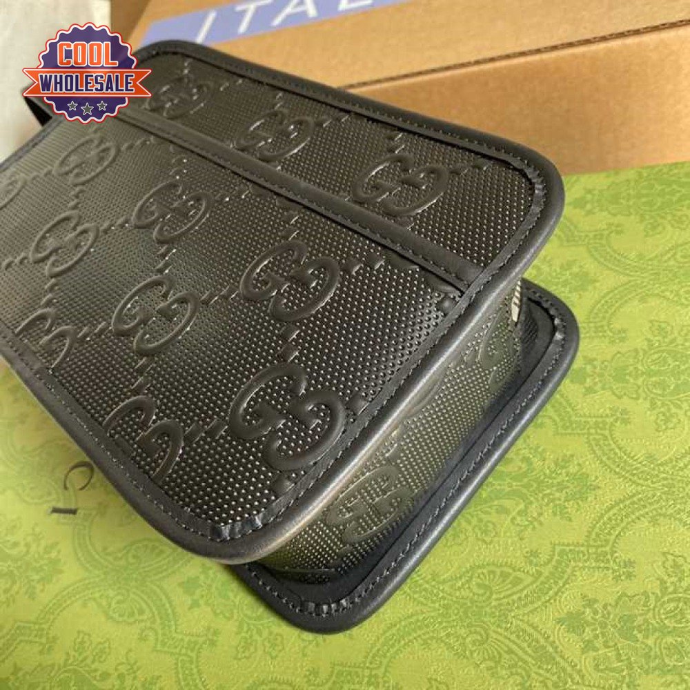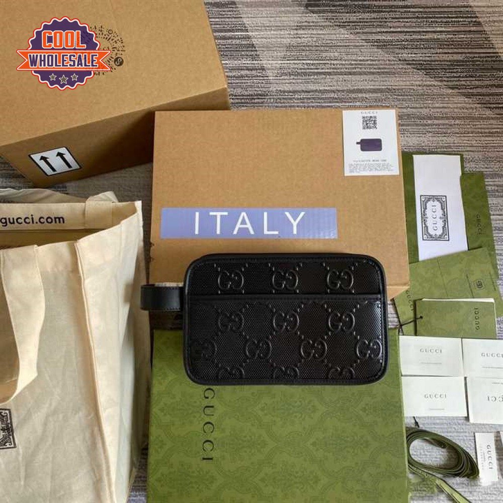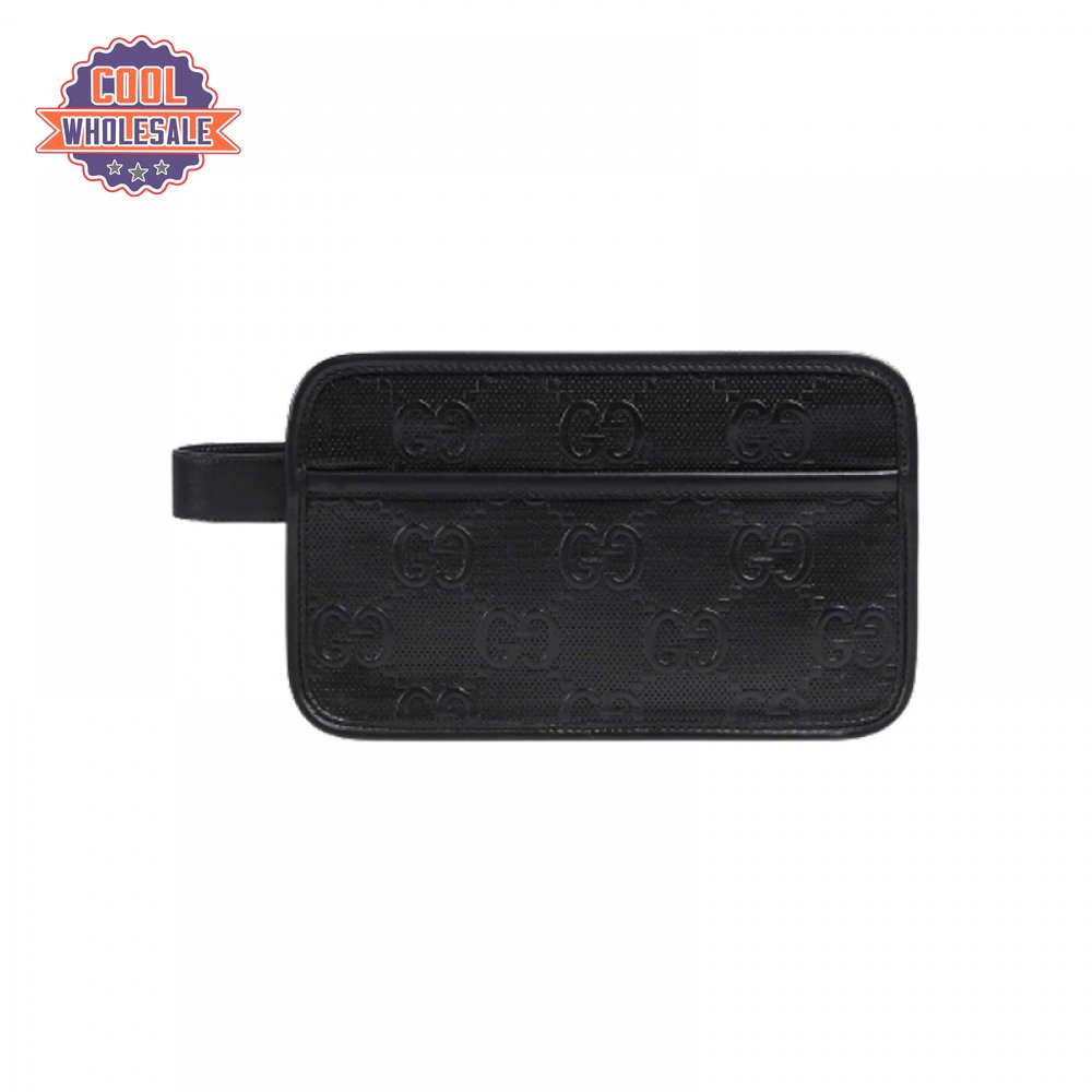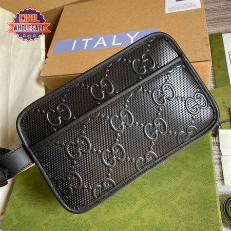 Gg Embossed Cosmetic Case Black Gg Embossed Leather Cotton Linen Lining GBB020