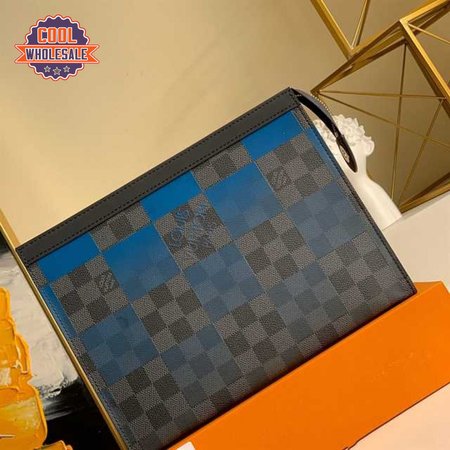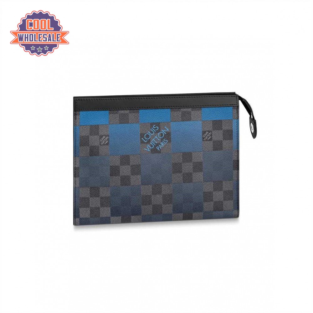 pochette voyage mm damier graphite canvas in blue - pb04